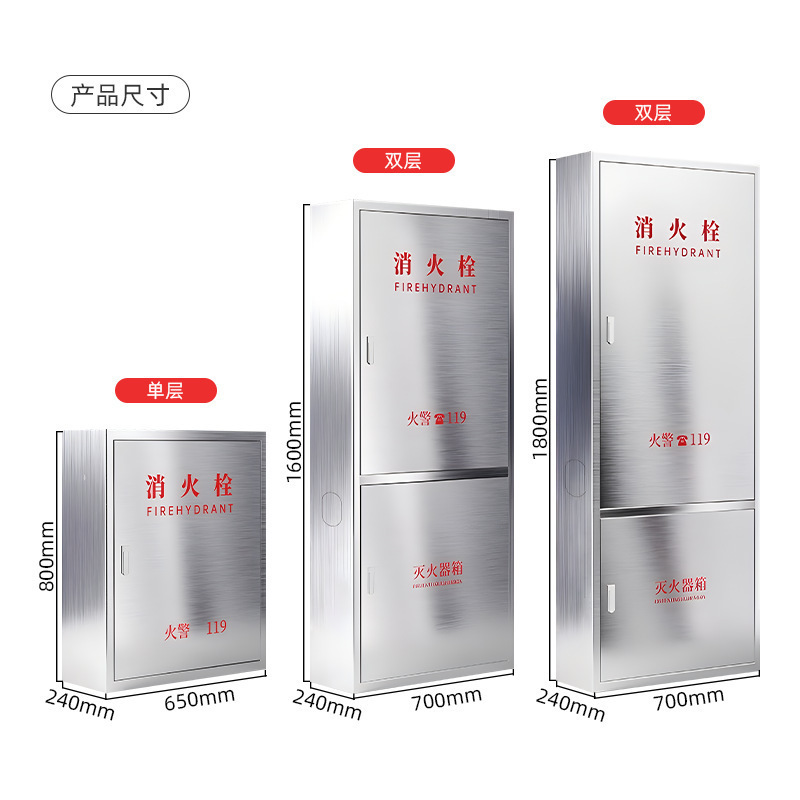 | 规格 | (1800*700*240mm)201不锈钢消火栓箱 | 规格 | (1800*700*240mm)304不锈钢消火栓箱 |