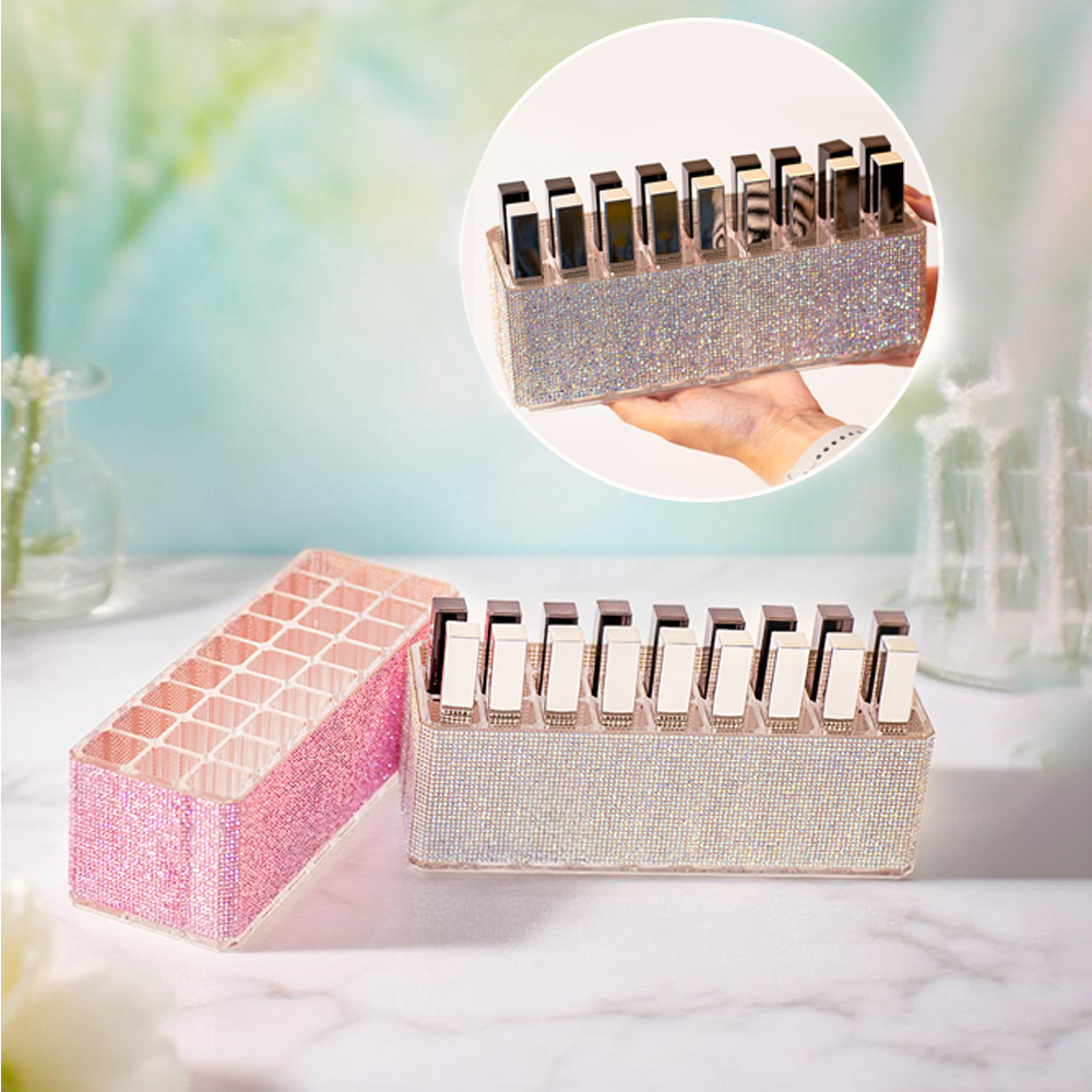 镶钻奢华亚克力27格口红收纳盒 透明眉笔眼线笔收纳盒整理展示架