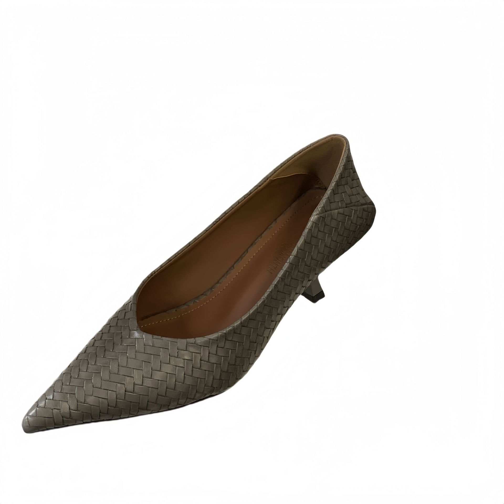 欧美复古编织气质尖头浅口女单鞋秋冬新款时尚百搭通勤细跟小单鞋