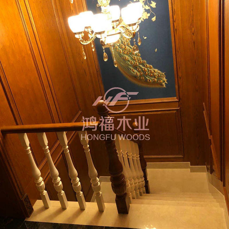 轻奢楼梯扶手别墅铜单支楼梯立柱酒店会所铝艺家用实木楼梯护栏