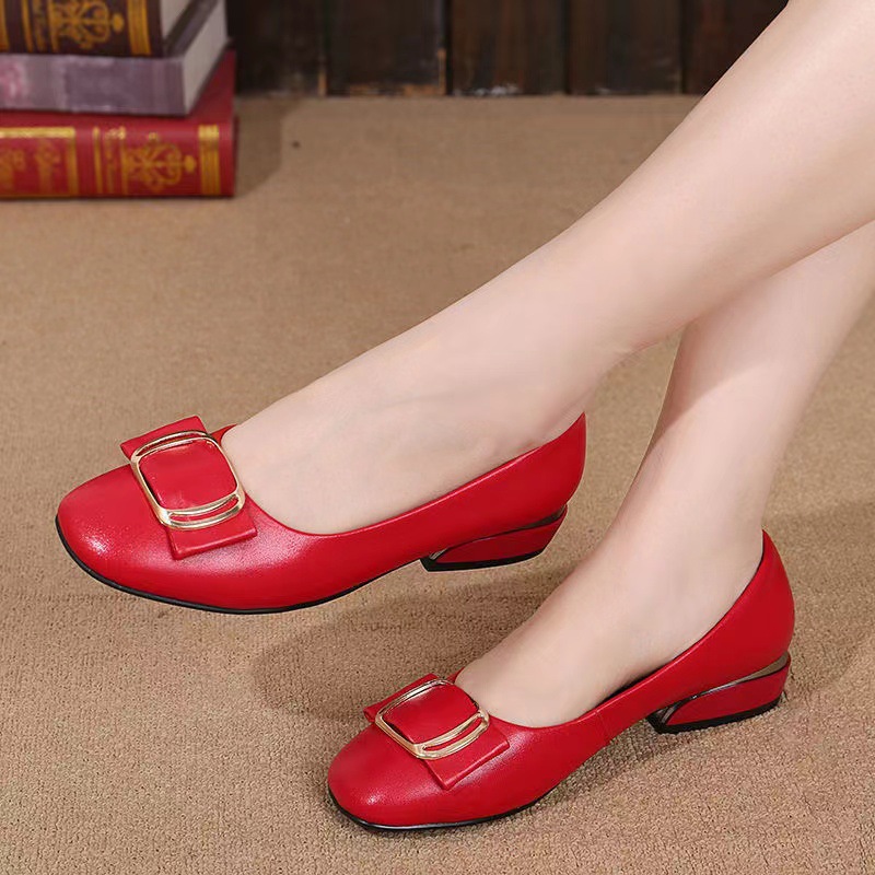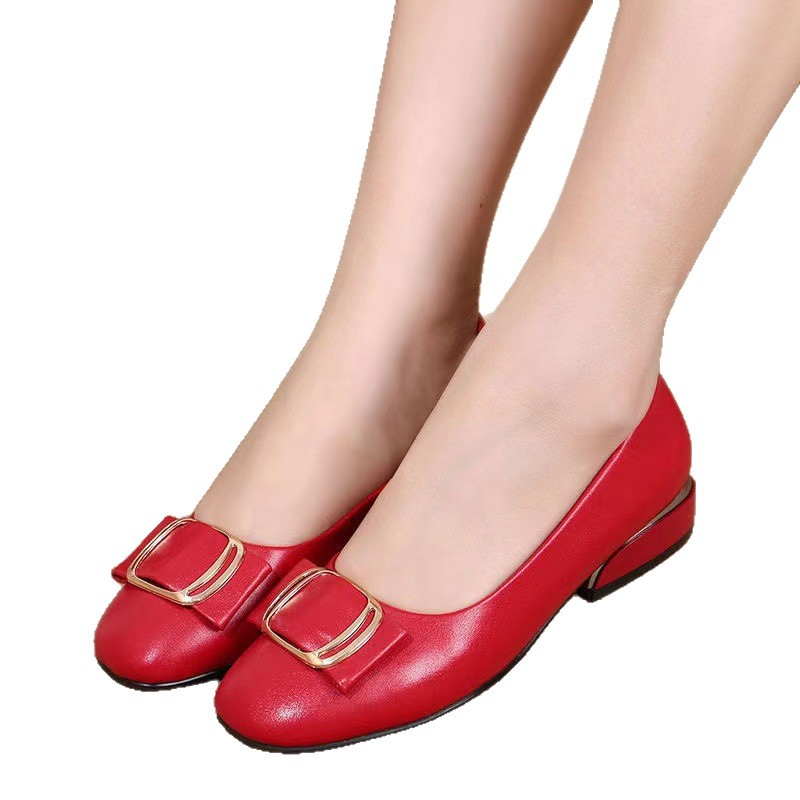 跨境妈妈鞋春秋款真软皮舒适粗跟浅口四季中年工作鞋中跟洋气女士