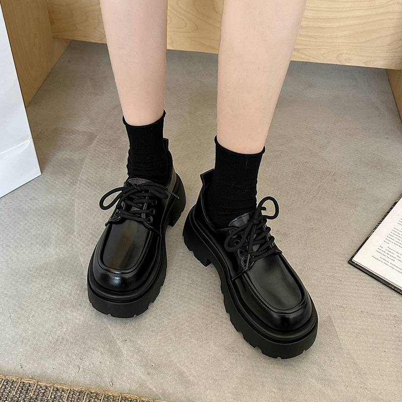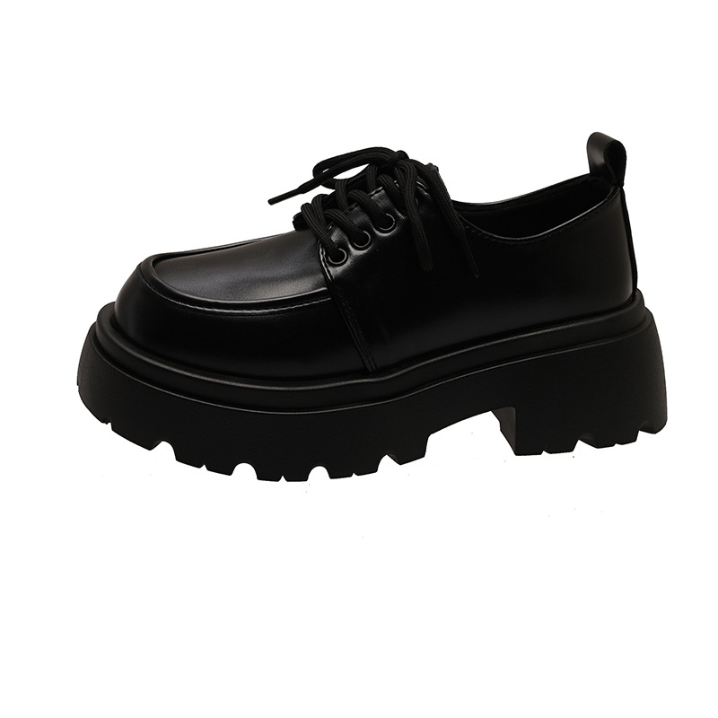 2025夏秋新款百搭英伦小皮鞋复古女5cm圆头增高厚底乐福鞋子舒适
