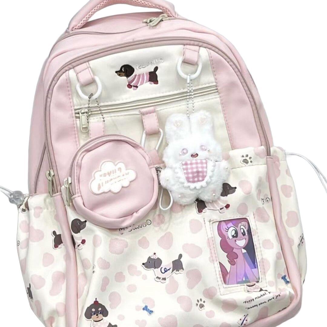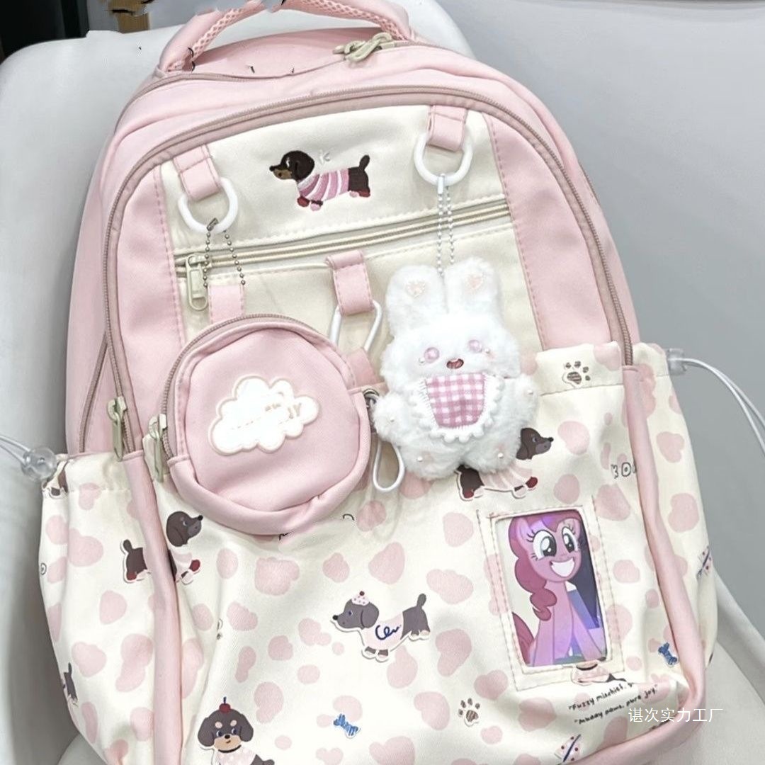 可爱少女高颜值大容量腊肠狗双肩包印花书包初中生背包小学生