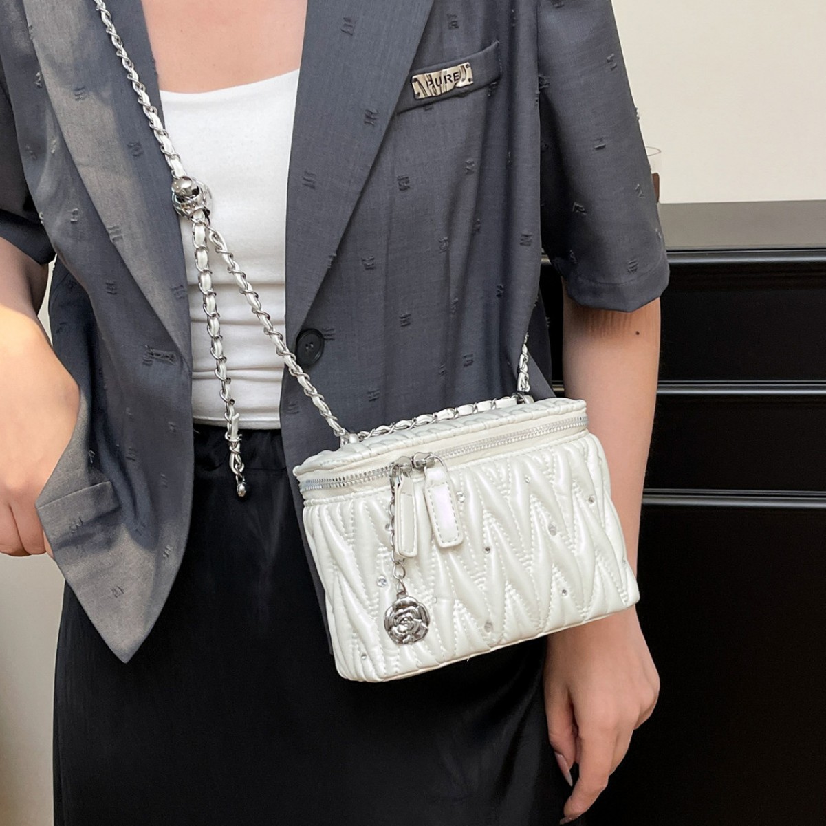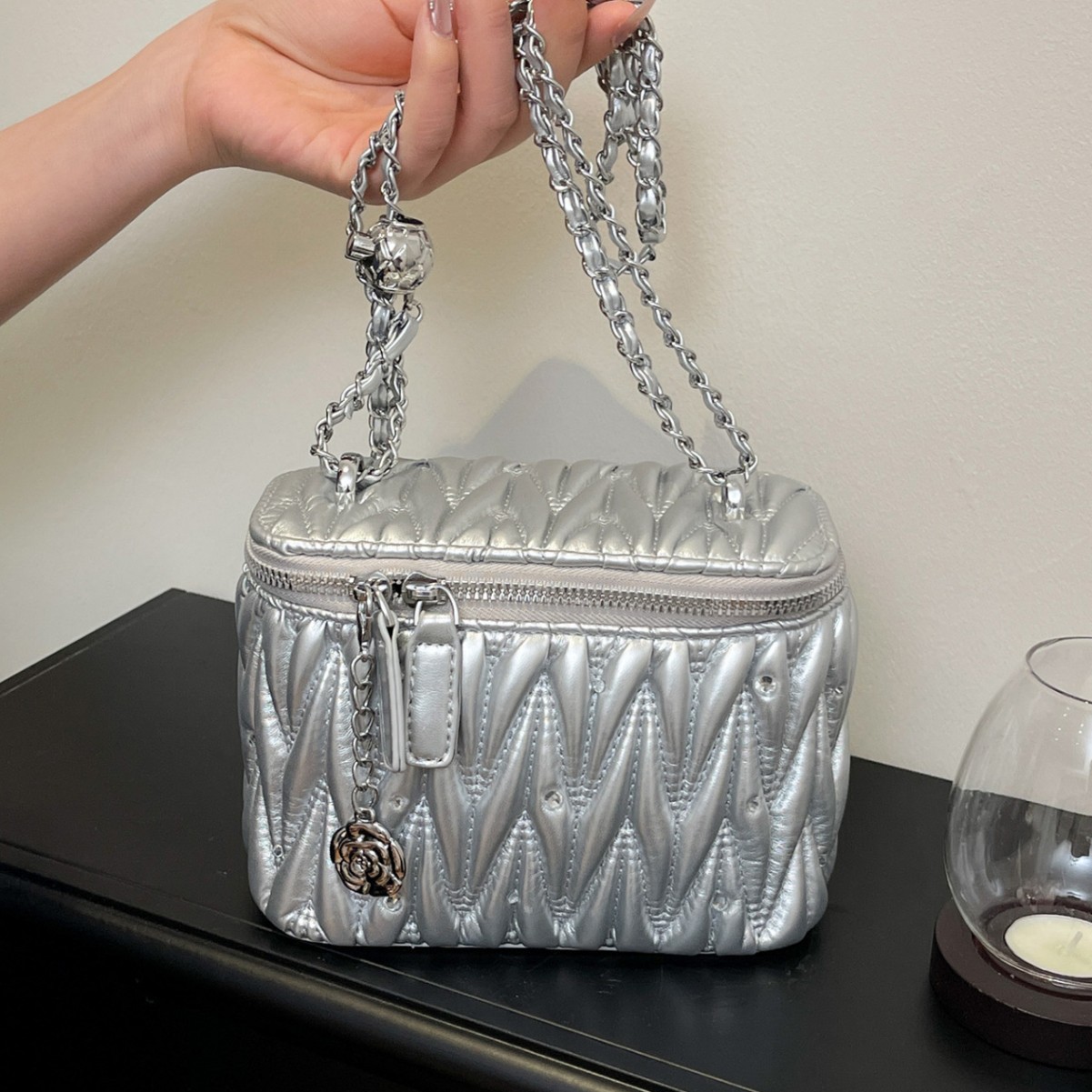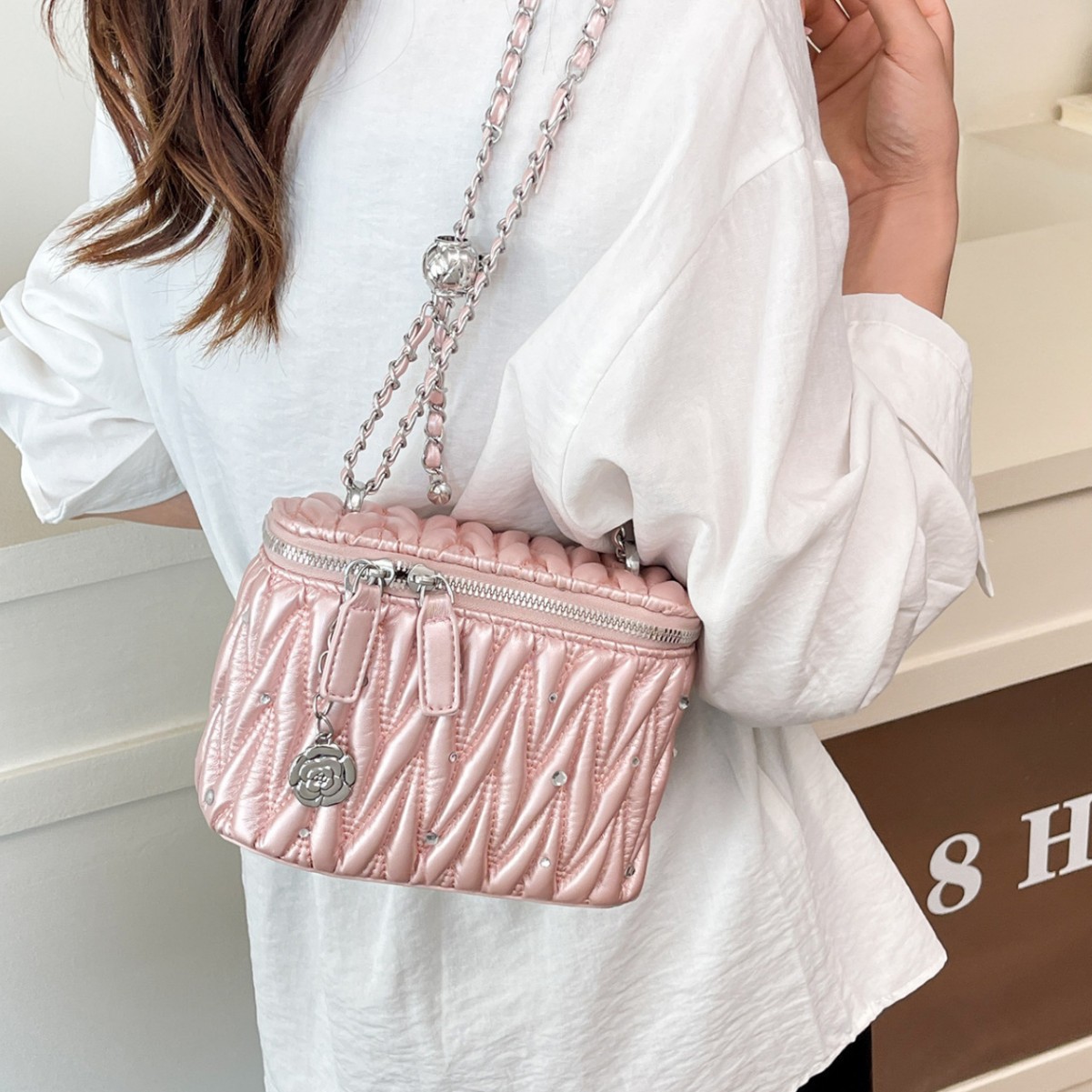 超火小包包女夏天2025新款时尚链条斜挎包韩版爆款褶皱盒子水桶包