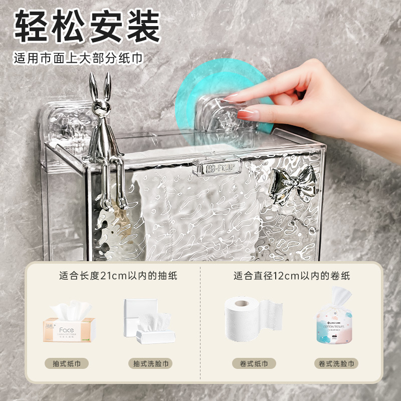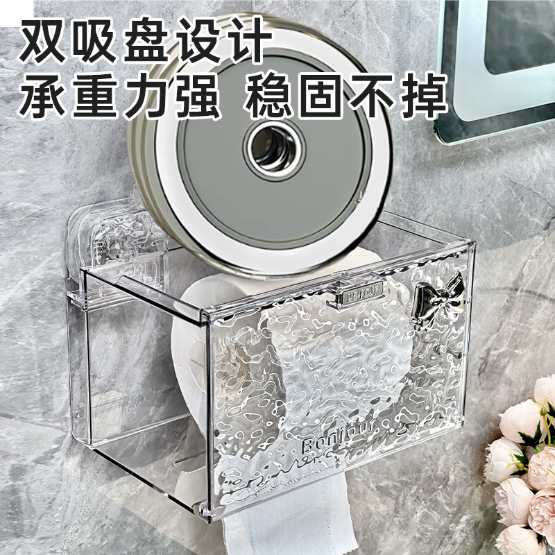 轻奢吸盘卫生间厕纸盒壁挂式防水纸巾盒置物架厕所手纸卷纸抽纸盒