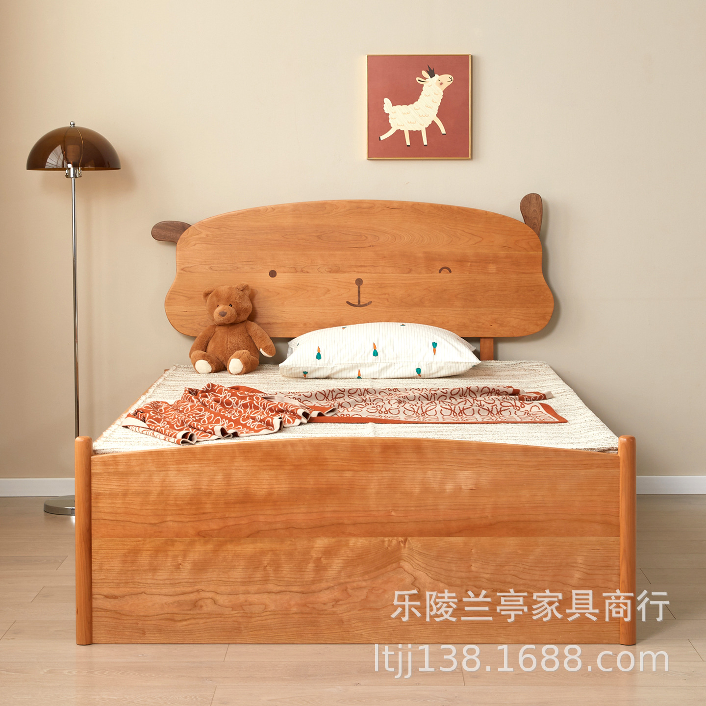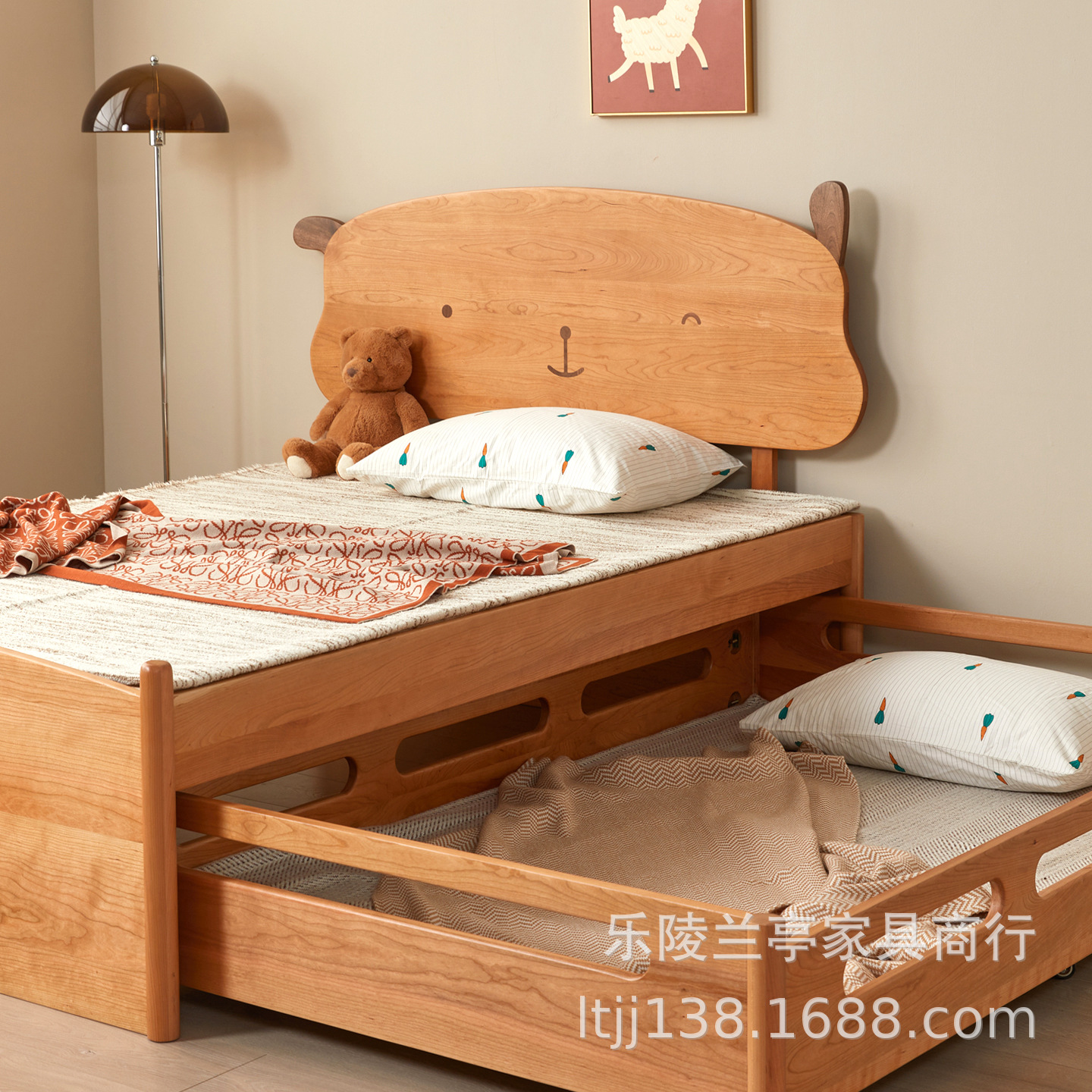 北美橡木原木儿童床卡通简约推拉拖床樱桃木实木多功能双层子母床