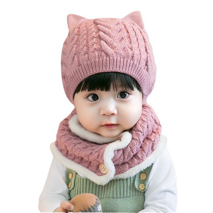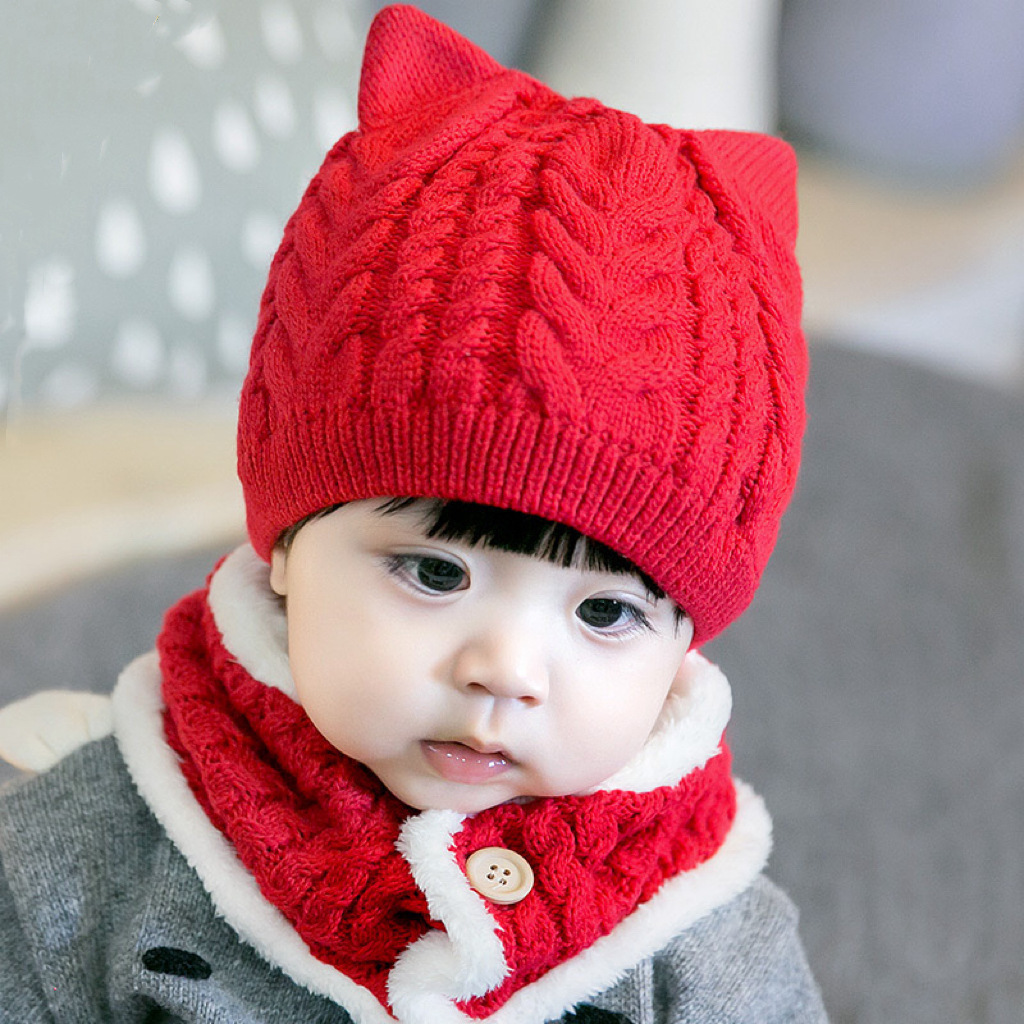 婴儿加厚毛线帽童女女童男童暖帽帽子秋冬耳毛儿童一体保暖毛线护