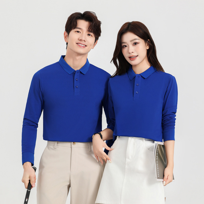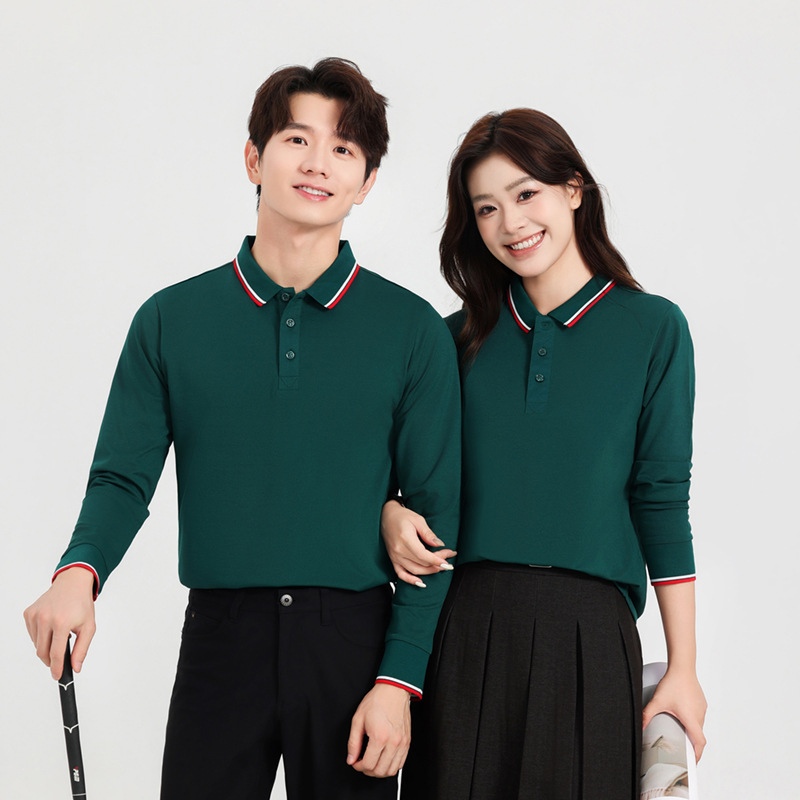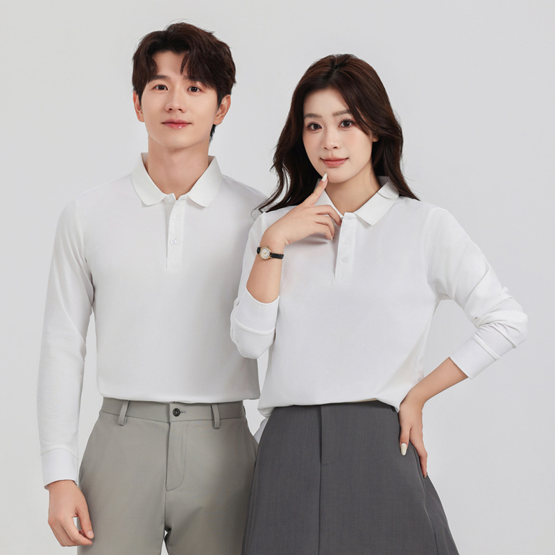 新款翻领长袖t恤polo衫定印制logo工作服班服广告文化衫刺绣批发