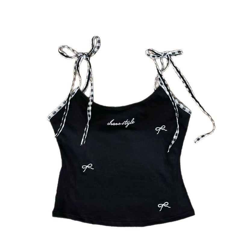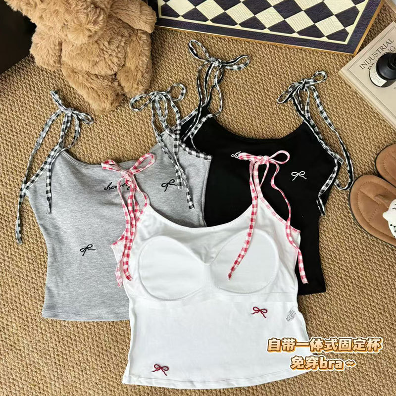 纯欲辣妹绑带式吊带美背心刺绣图带胸垫内衣外穿打底纯棉抹胸上衣