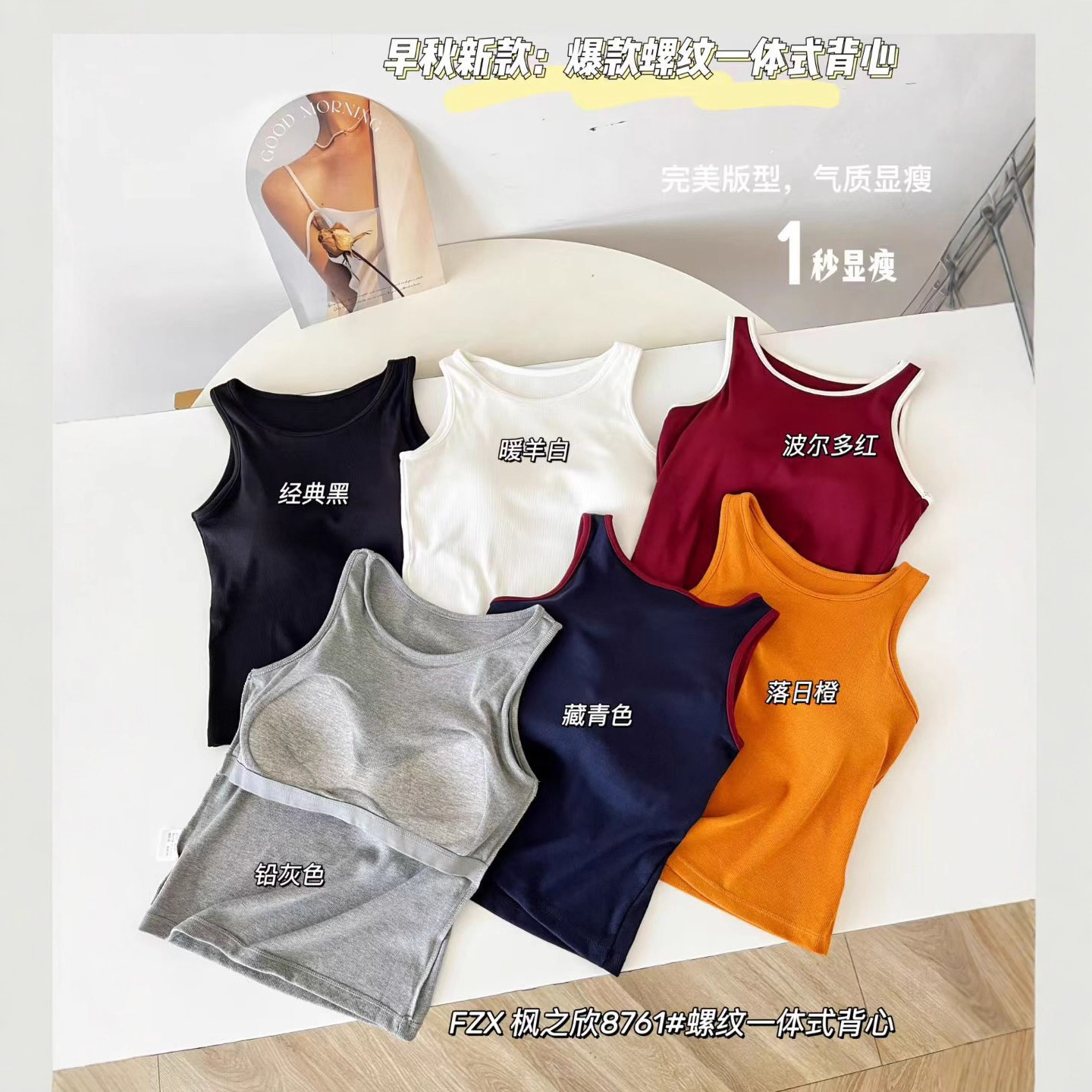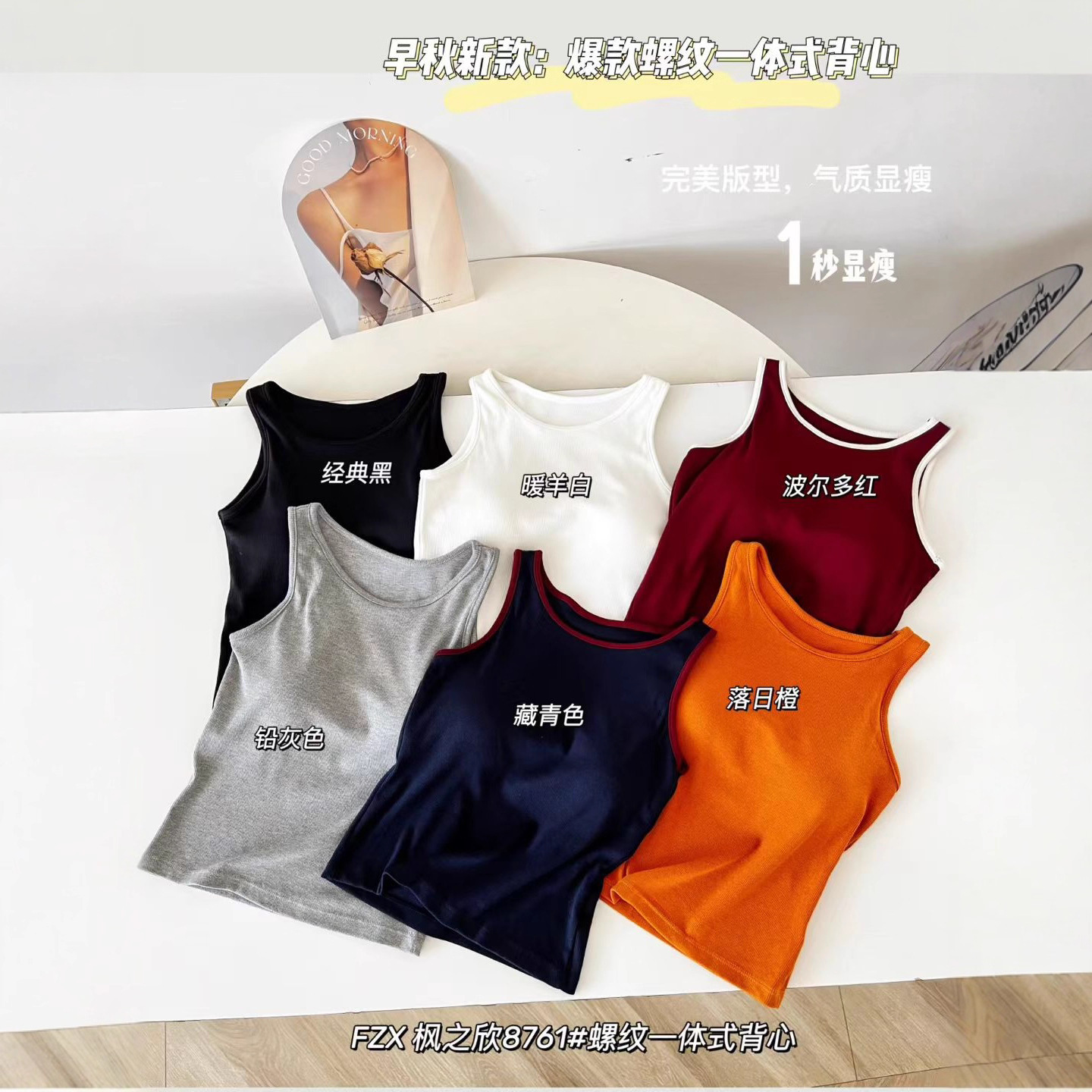 枫之欣8761早秋爆款时尚螺纹一体式经典圆领百搭背心修身显瘦