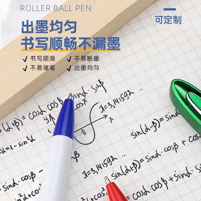 塑料按动圆珠笔定LOGO喷漆/实色1.0mm工程专供外贸广告笔现货