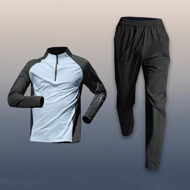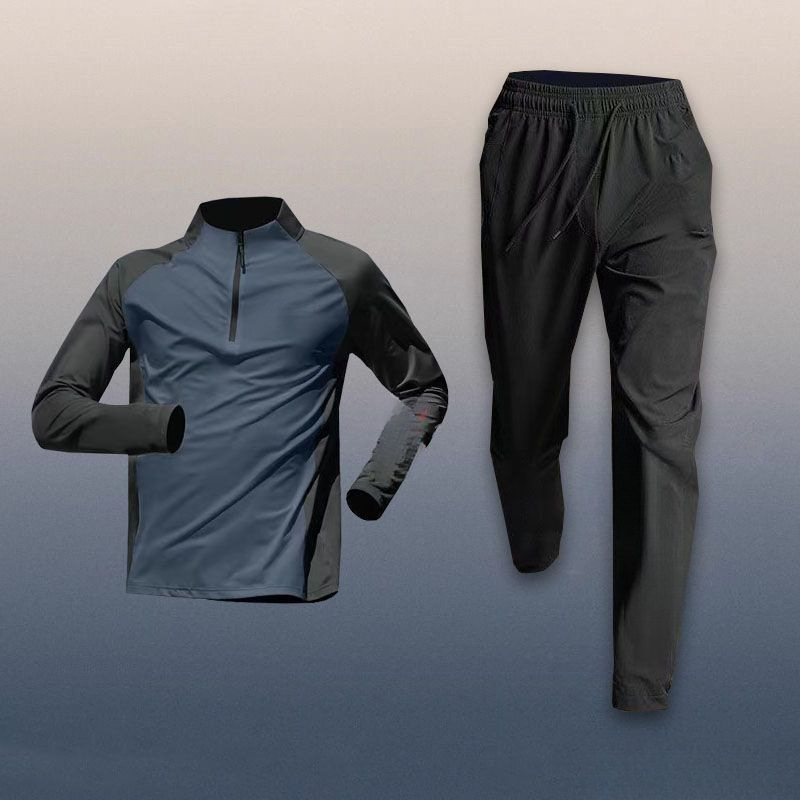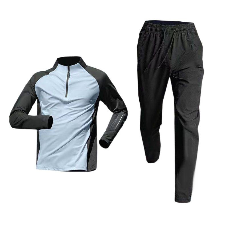 户外运动套装男训练服速干上衣半拉链长袖长裤包邮批发代发跨境