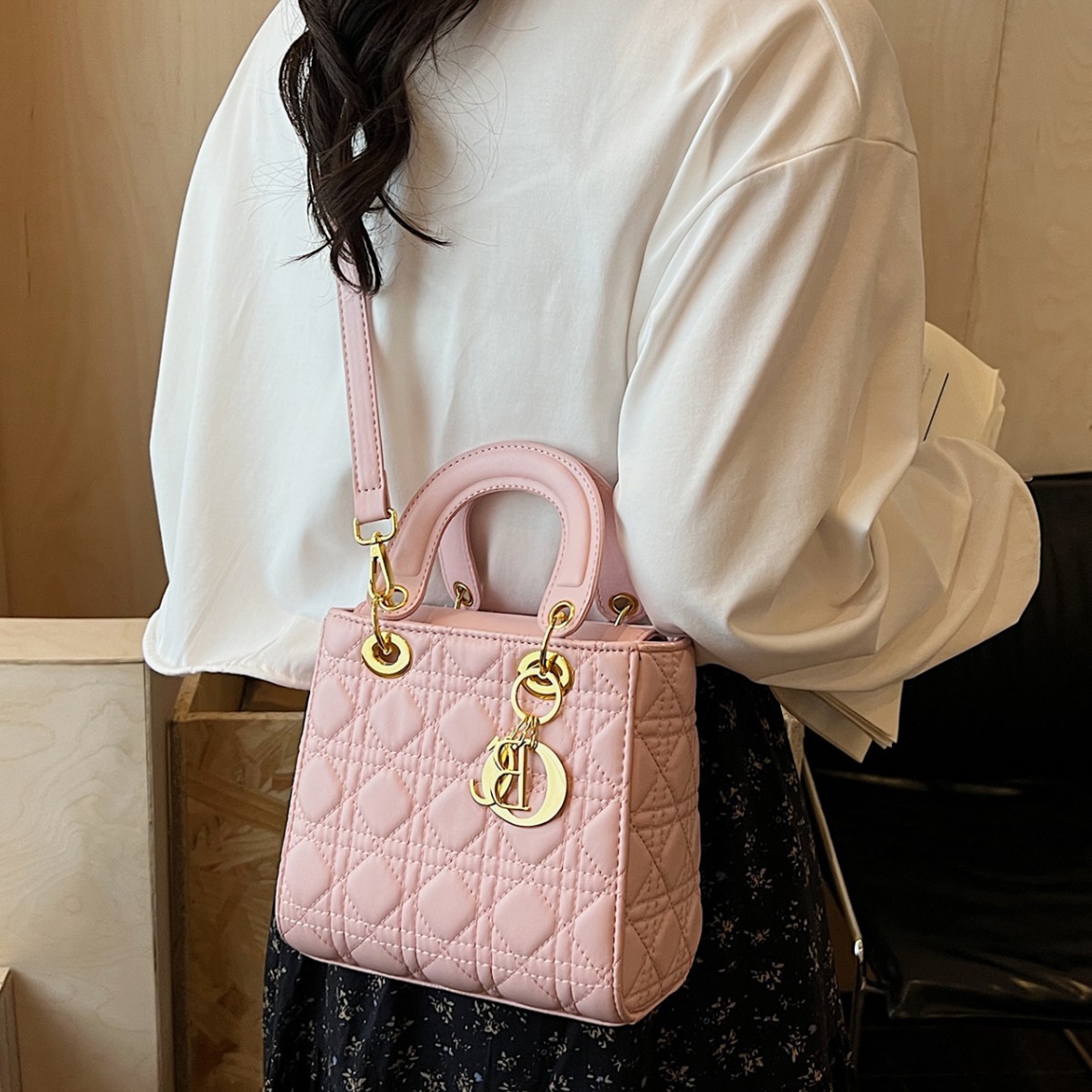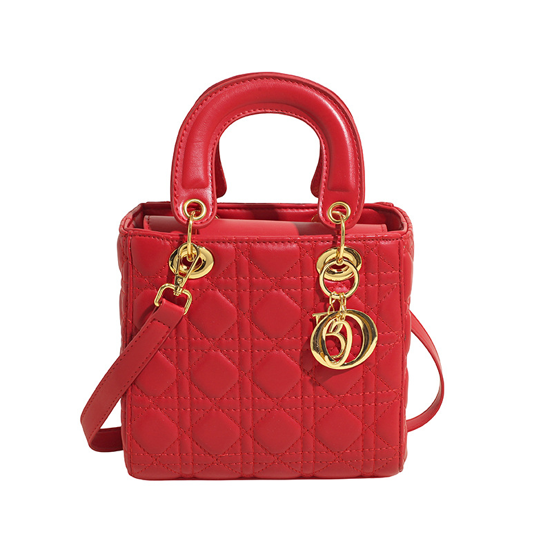 2025新款高级小众包包女潮洋气百搭菱格手提包单肩斜跨精致戴妃包