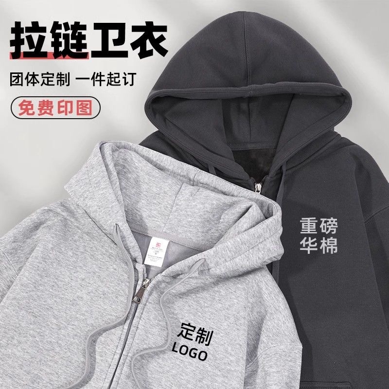 定制380克重磅连帽卫衣男女加绒运动宽松休闲拉链银狐绒开衫外套