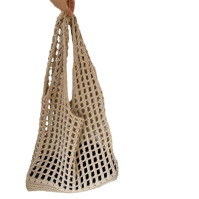 时尚镂空针织沙滩包海边单肩包新款托特简约百搭编织大容量度假XR