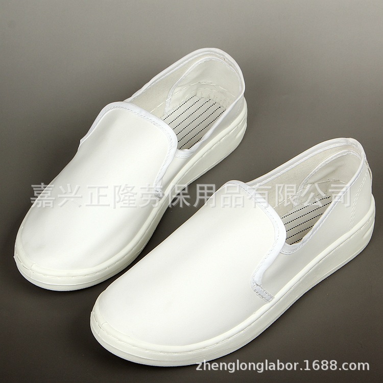 定制白色皮革面PU底中巾鞋防静电鞋无尘鞋车间工作鞋洁净鞋低帮