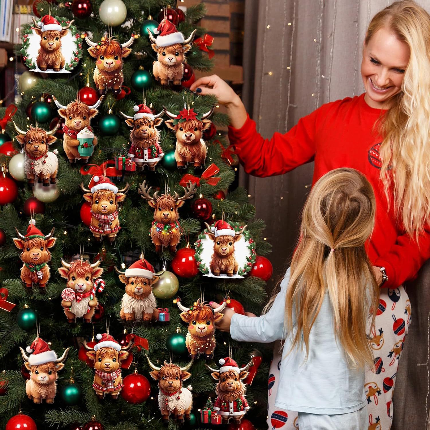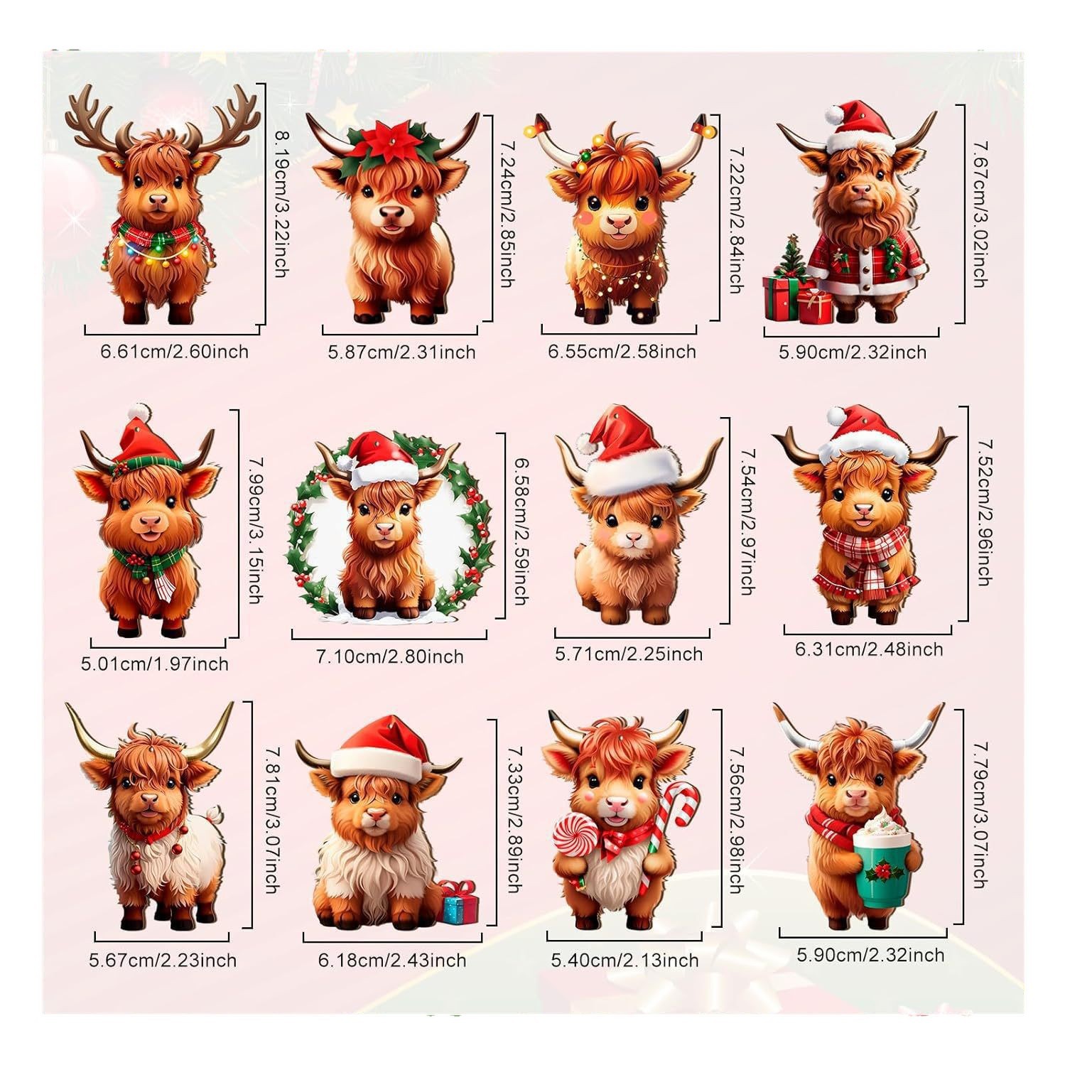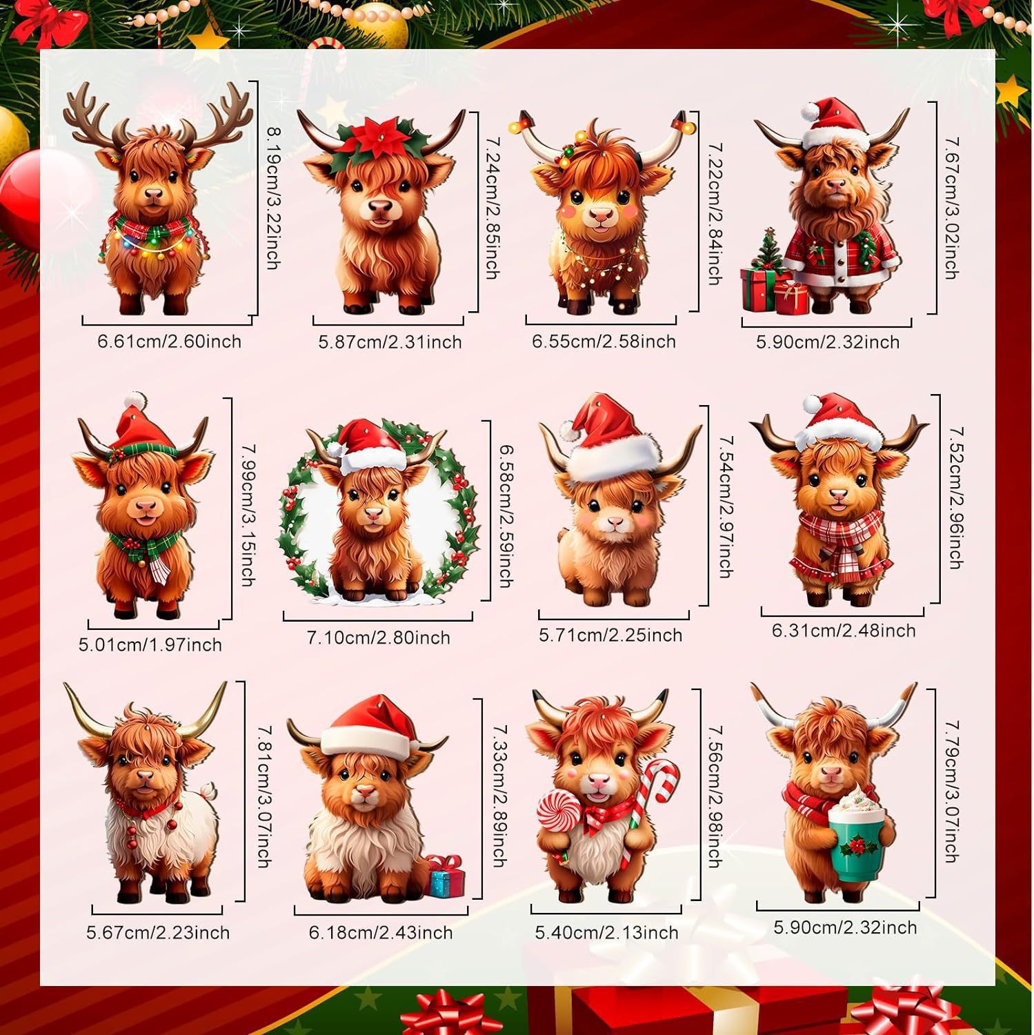奶牛圣诞装饰木制高地奶牛装饰圣诞树牛镂空吊坠圣诞节派对