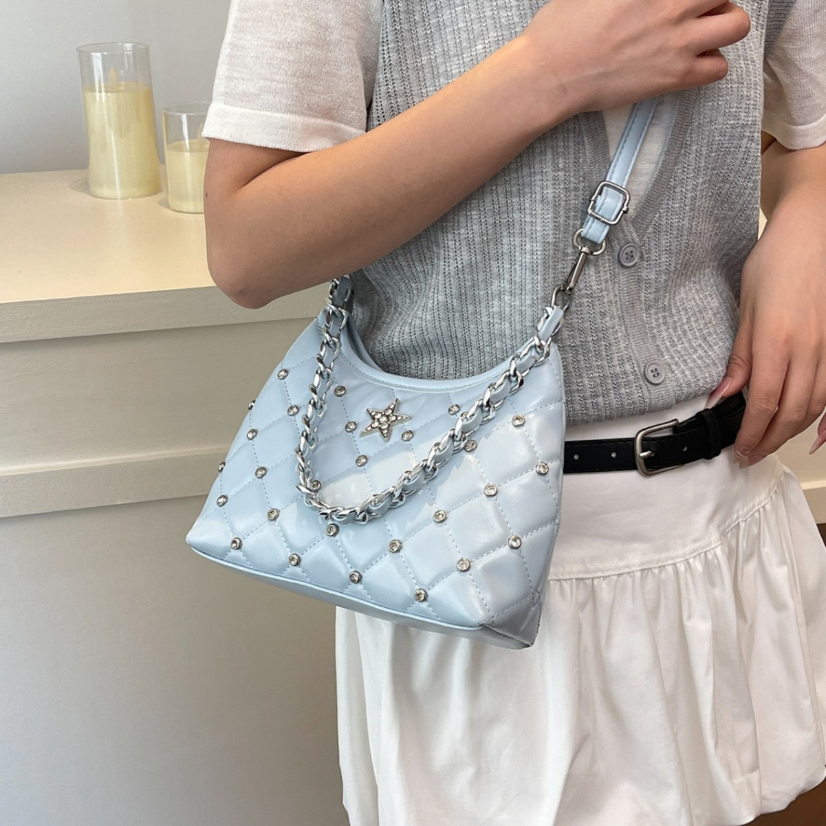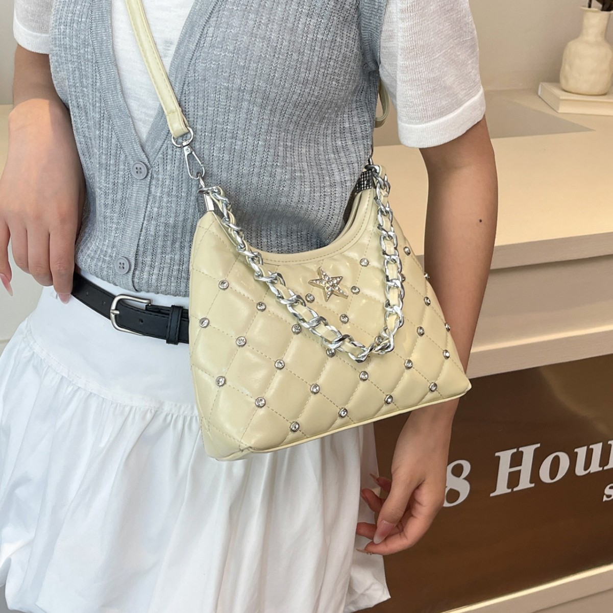 跨境新款小香风菱格链条腋下包包女2025韩版时尚百搭大单肩斜挎包