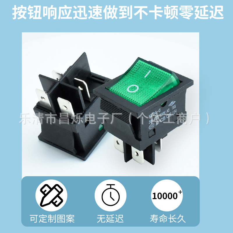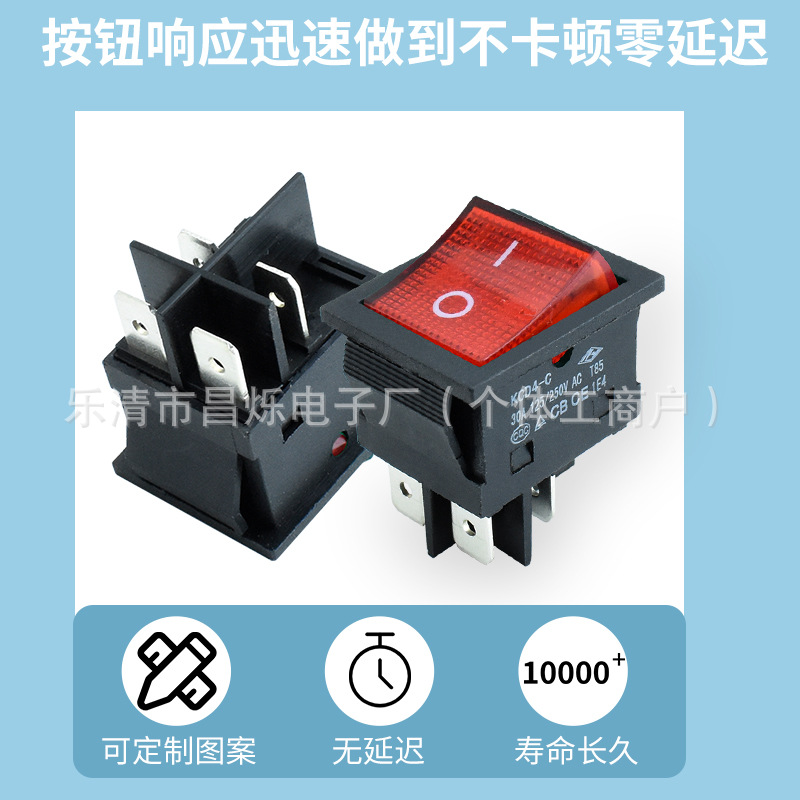 CB认证带灯船型开关 KCD4-C单卡大电流30A翘板开关