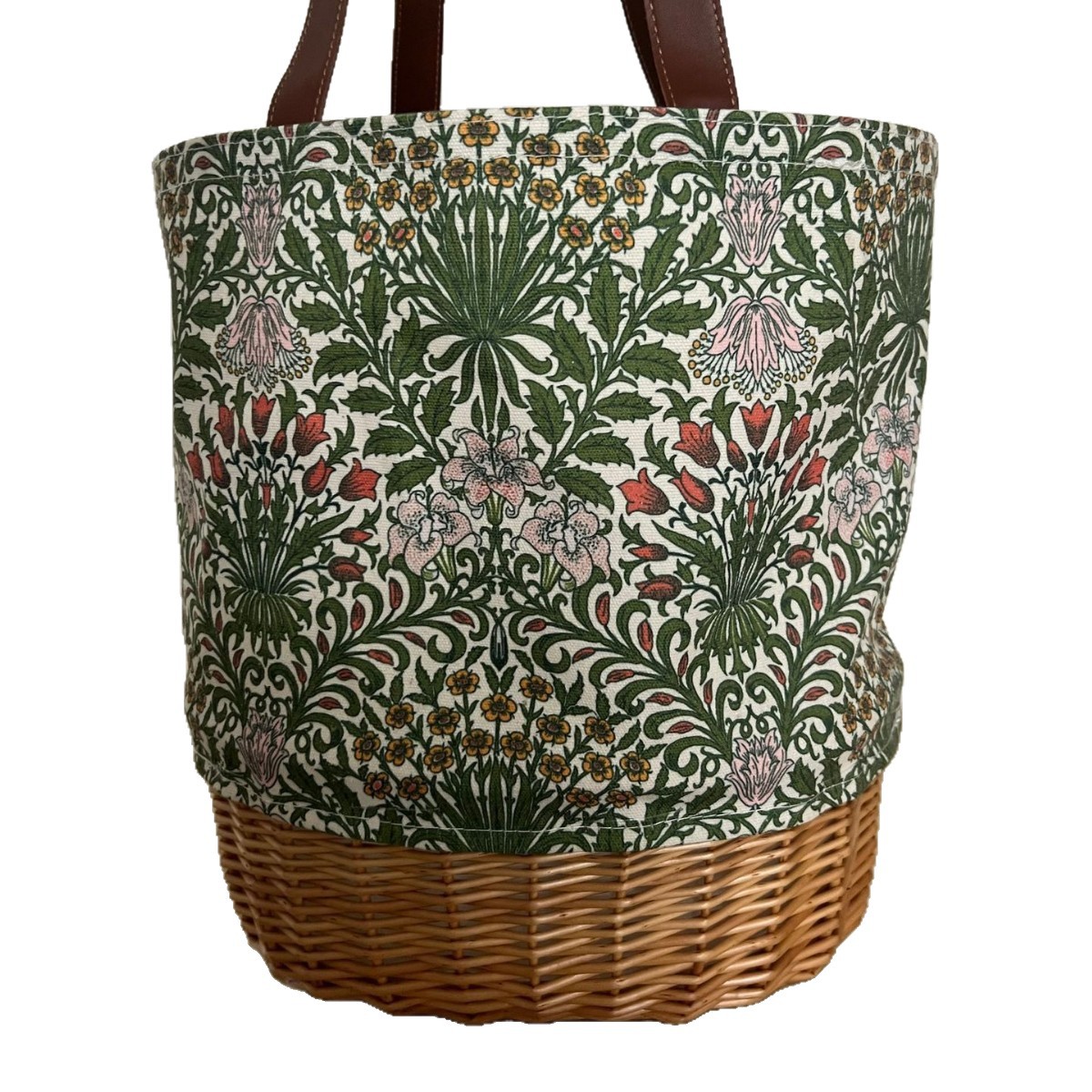 藤编野餐篮子手提袋柳编手提包编织篮购物篮帆布拼接包手工草编包