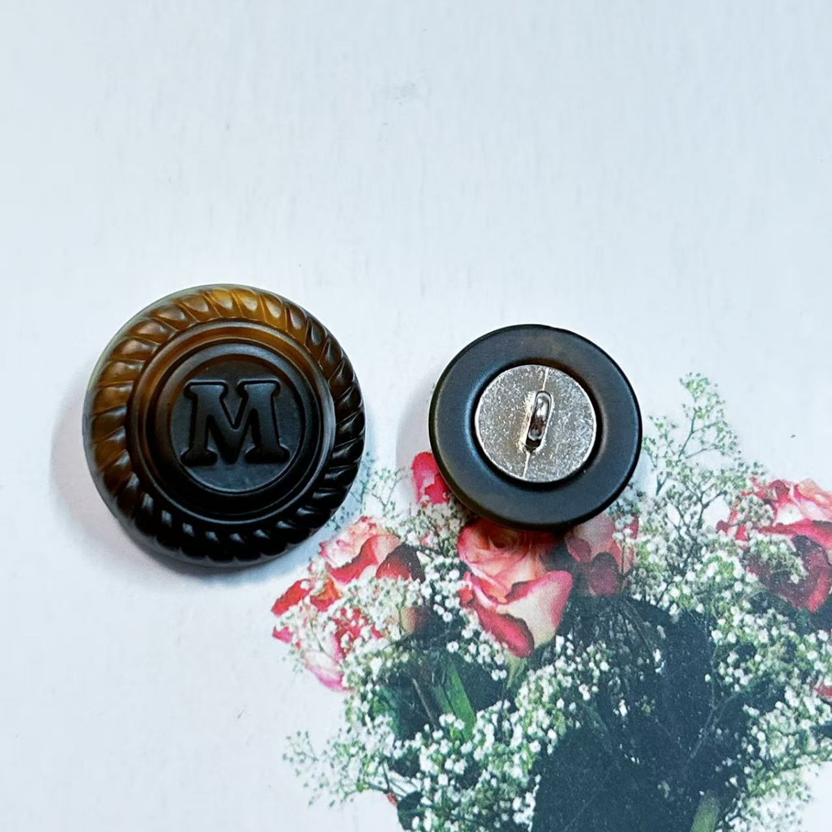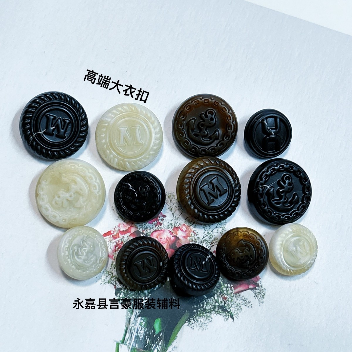 树脂船锚W字扣子黑色白色西装上衣风衣毛呢大衣纽扣百搭时 尚圆形