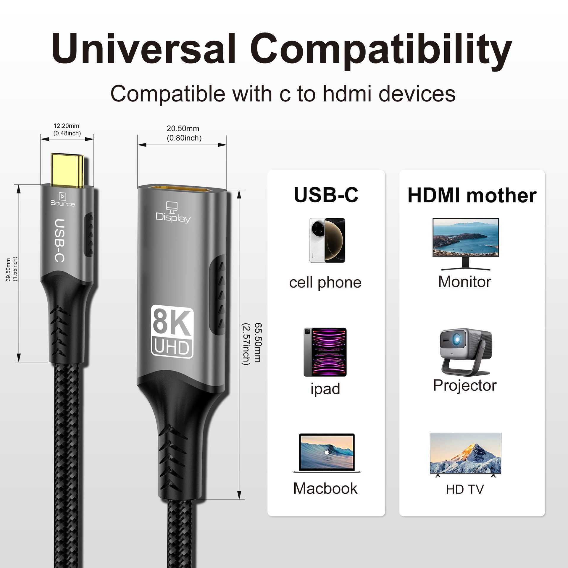 | 颜色 | 8K Type-c转HDMI 3m | 颜色 | 4K Type-c转HDMI 1m |