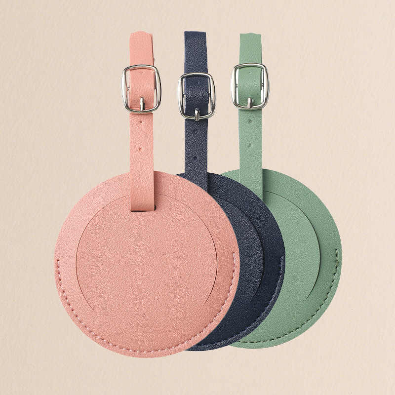 跨境定制多色送印刷纸卡可定企业LOGO圆形加厚pu皮质行李牌批发