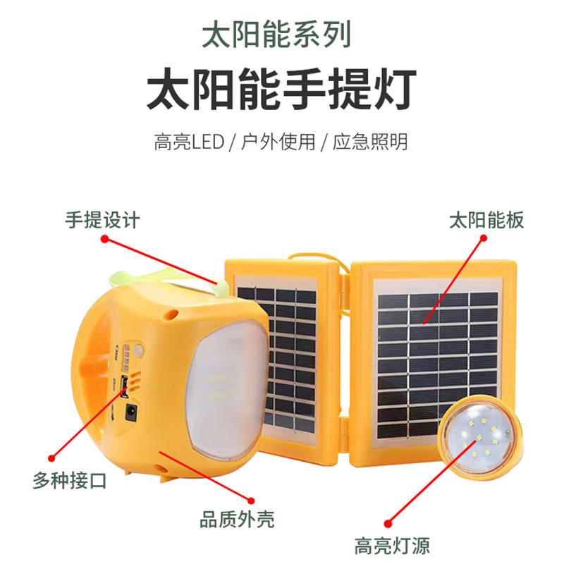 现代户外太阳能手提灯家用应急野外露营电池板照明灯具便携超亮
