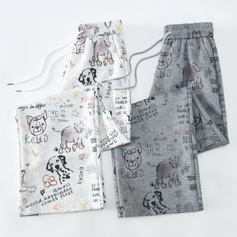 2025秋季慵懒风卡通涂鸦印花阔腿长裤女休闲显瘦运动卫裤