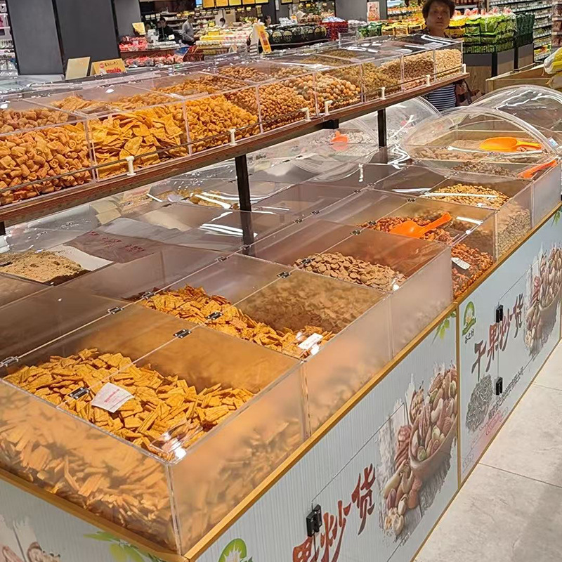 超市专供定 制商用炒货展示柜304不锈钢材质透明可视炒货柜展示柜