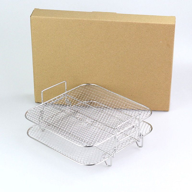 跨境空气炸锅烤架304不锈钢网架加厚二层可拆层置物架烧烤架批发