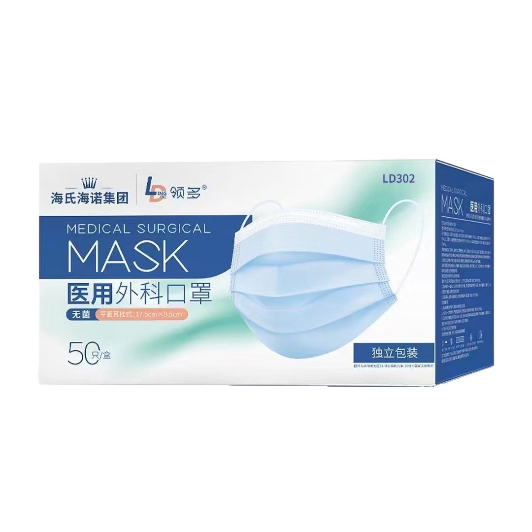 | 一次性使用 | 是 | 规格 | 领多 医用外科口罩(LD302独立包装)50只/盒—1盒 |