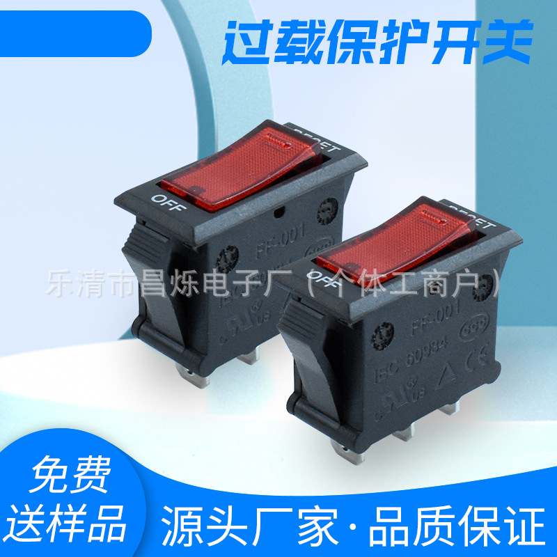过流保护开关 16A过载开关 KCD3 过载系列 3脚2档带灯翘板开关