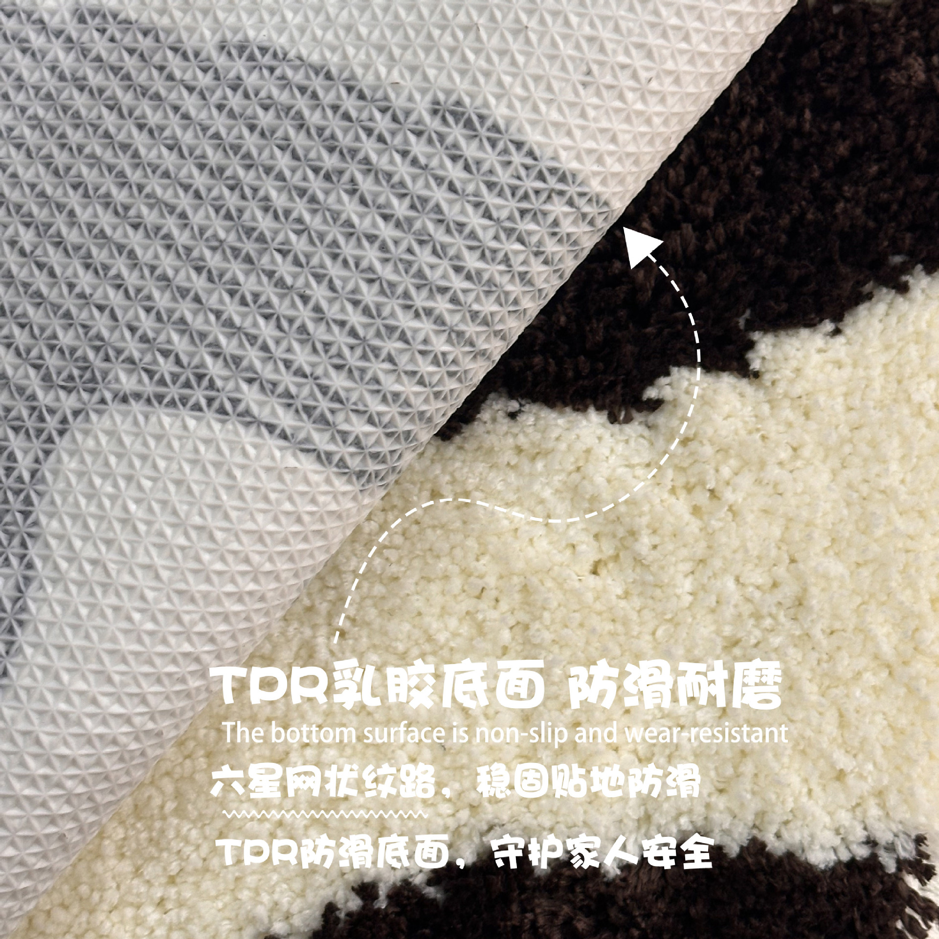 簇绒可爱熊猫植绒地毯儿童房间地毯四季通用卡通动物卧室地毯