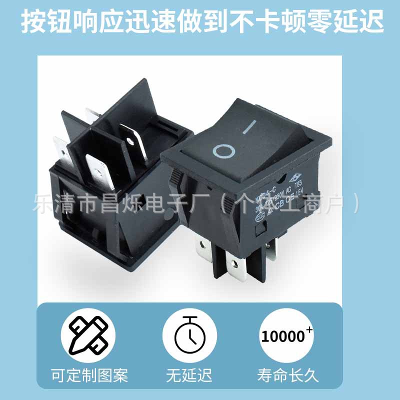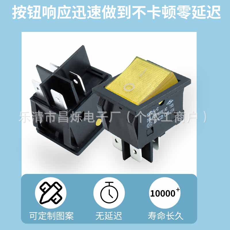 CB认证带灯船型开关 KCD4-C双卡大电流30A耐温阻燃翘板开关