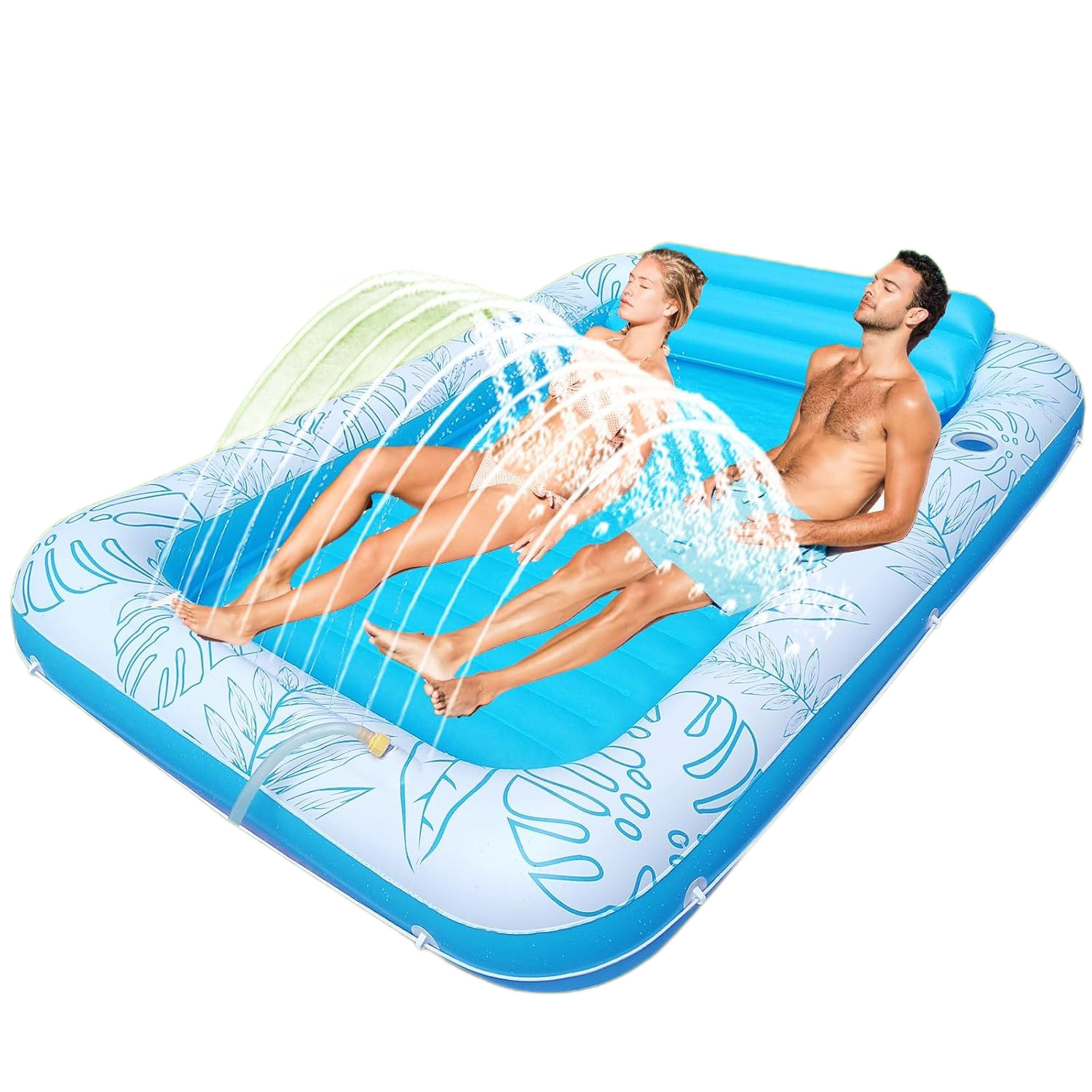 亚马逊热销便携新款双人水上充气枫叶浮排泳池晒黑池躺椅水床浮排