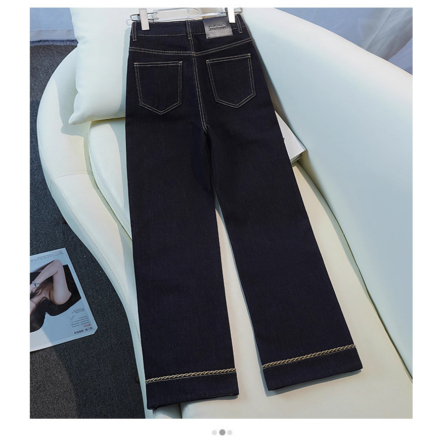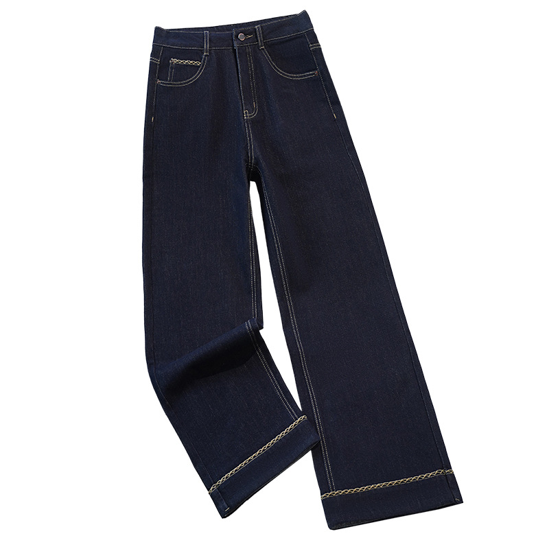 黑金色直筒牛仔裤女春秋款2025新款高腰宽松显瘦复古窄版阔腿裤子