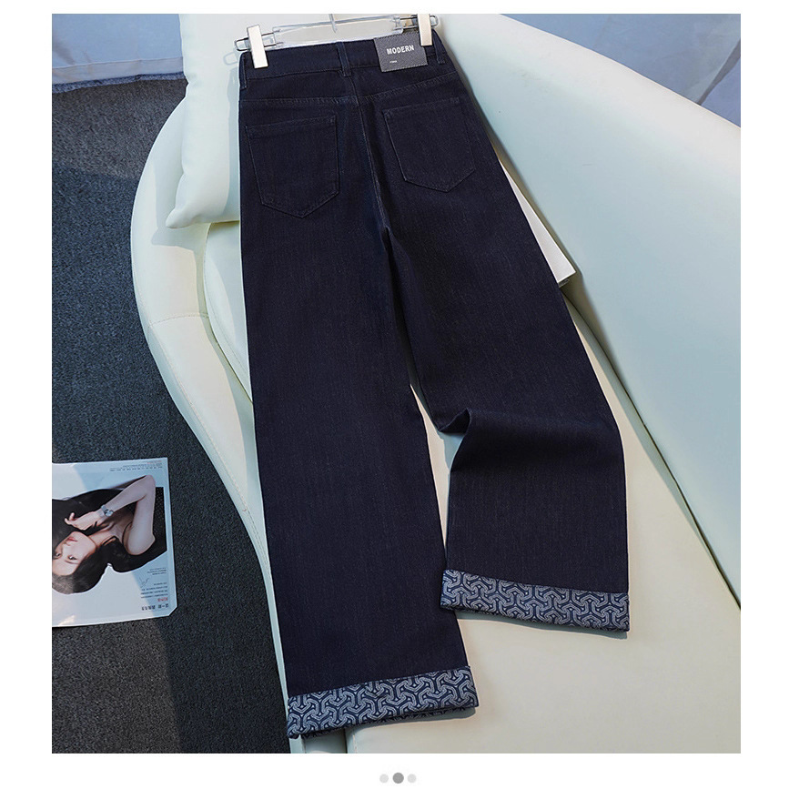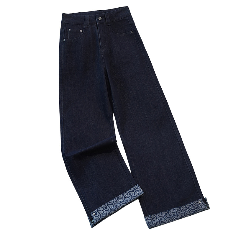 新款九分直筒牛仔裤女2025秋季薄款时尚显瘦印花卷边直筒休闲女裤