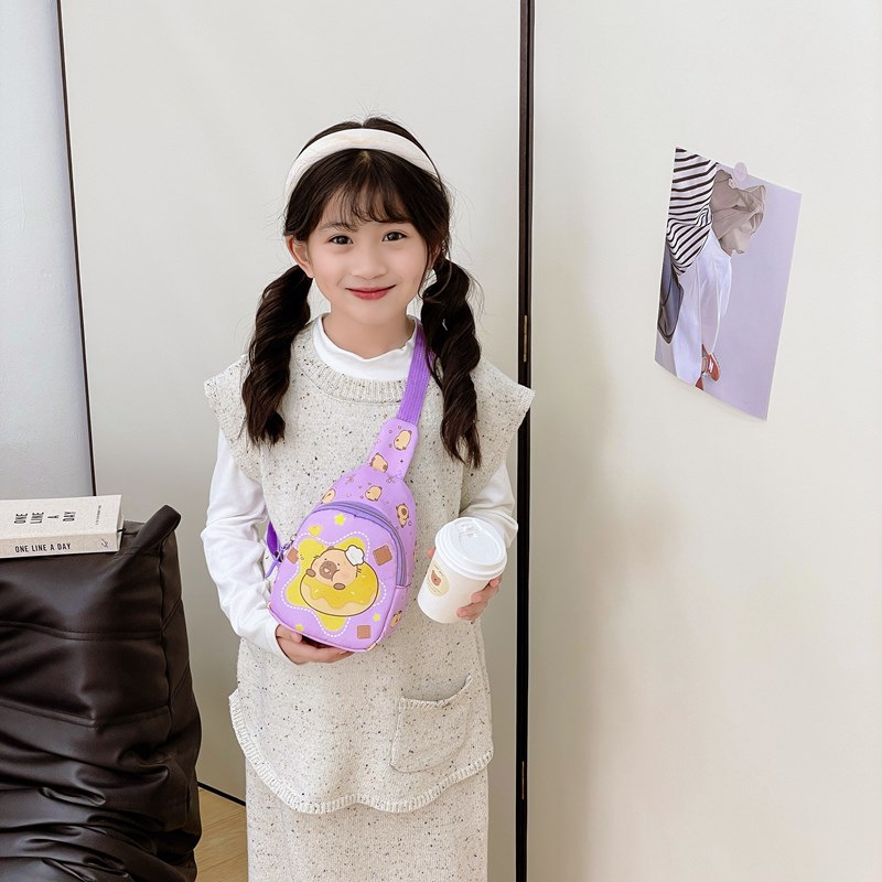 卡通儿童零钱包新款男童女孩斜跨包可爱宝宝卡皮巴拉户外斜挎胸包