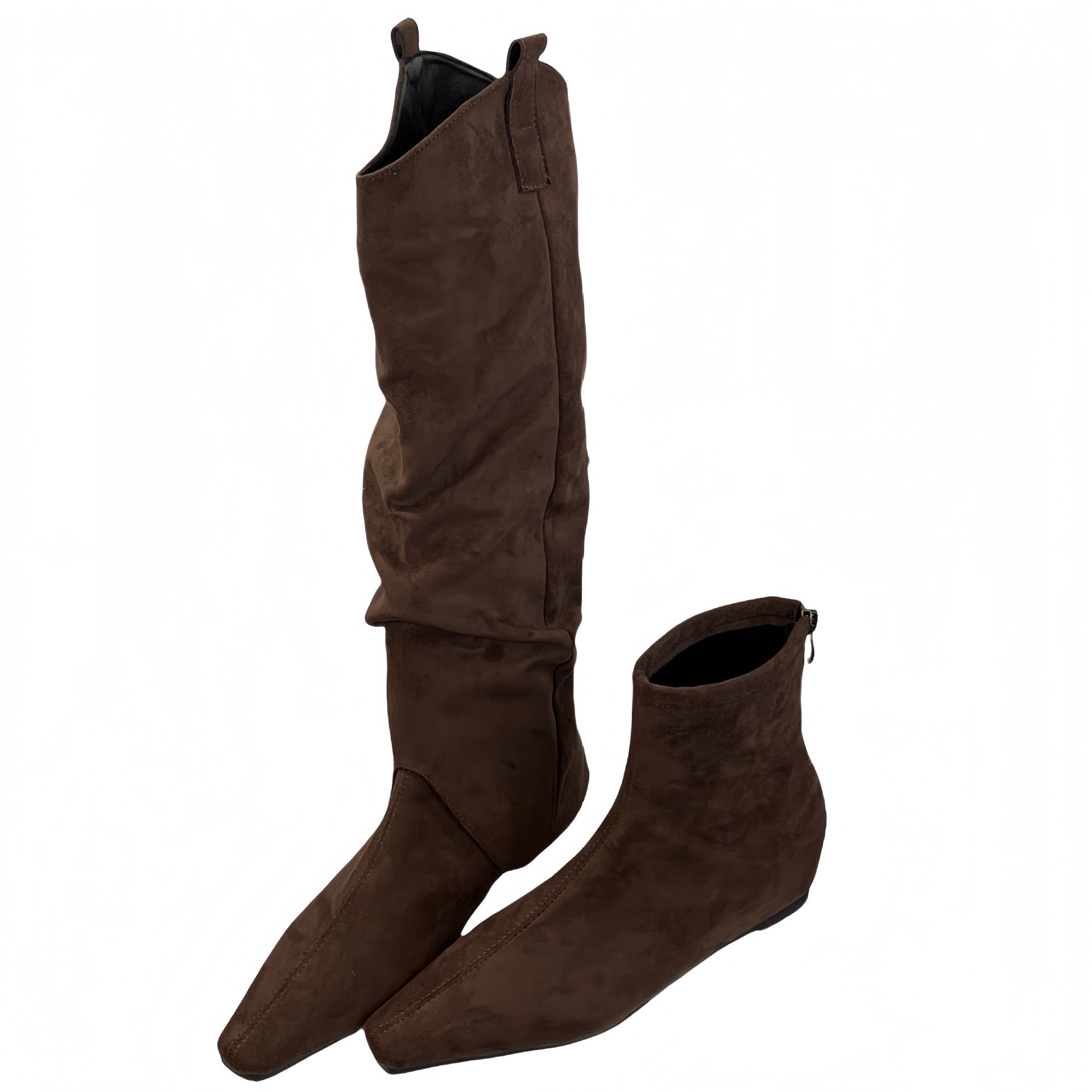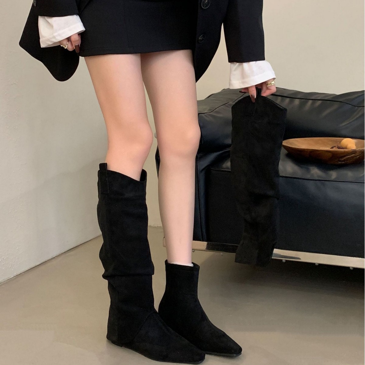 2025年秋冬季新款欧美气质小方头坡跟绒面可两穿款时尚百搭女长靴