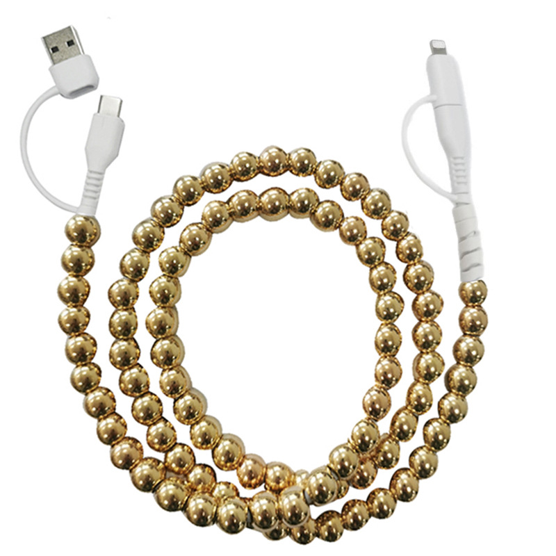 跨境热卖 四合一金珠串珠数据线 type C转Ip头超级快充手工彩珠线