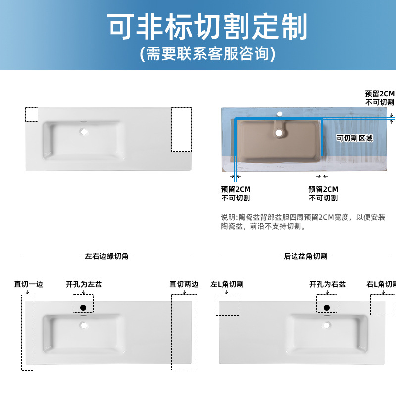 九᷂牧中边盆可切割浴室柜陶瓷一体盆偏盆左中右盆洗手盆洗漱台盆