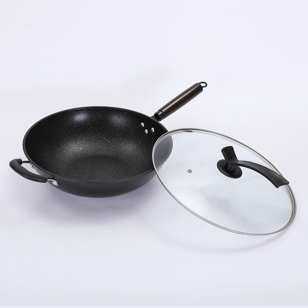 祥锐 新款麦饭石炒锅家用炒菜不粘锅长柄玻璃盖多功能平底精铁锅