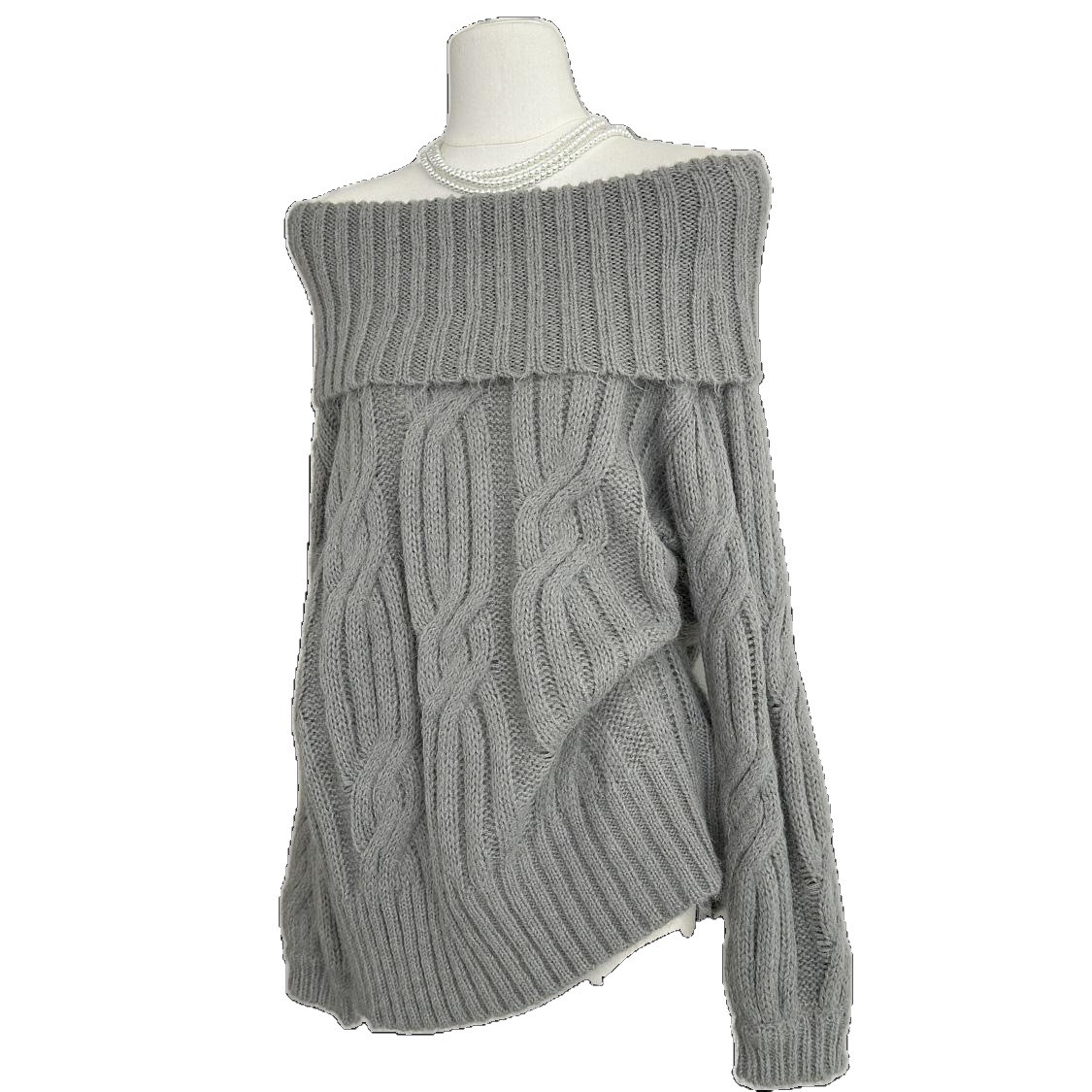 cchu纯子 法式慵懒大宽松一字领绞花套头毛衣女时髦复古针织衫