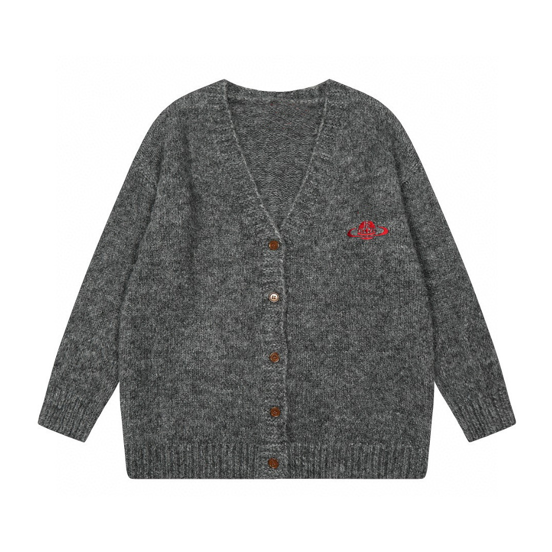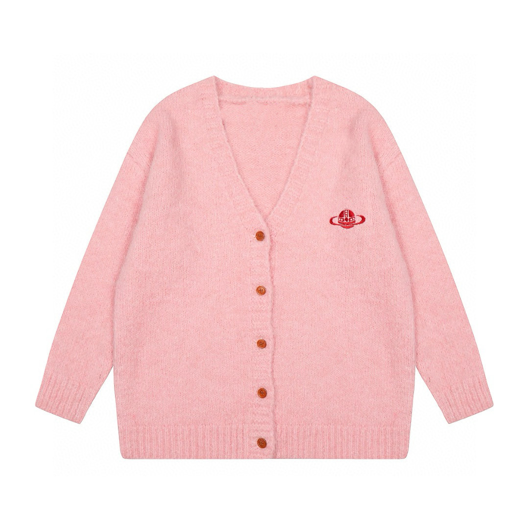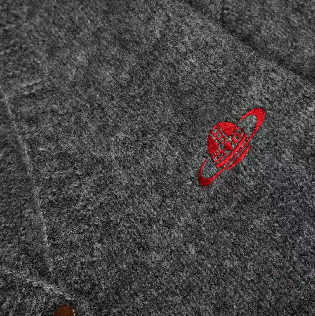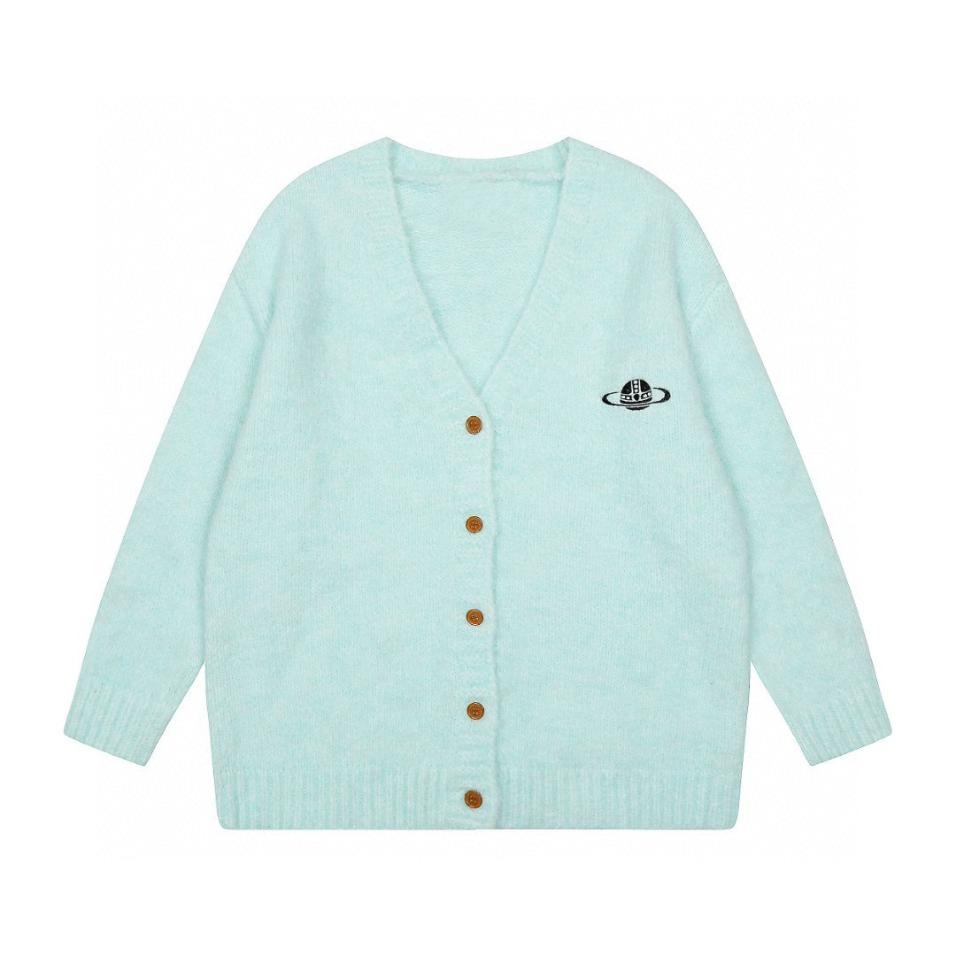 VIVI土星高版本秋冬羊毛衫刺绣开衫宽松休闲女V领外套一件代发潮
