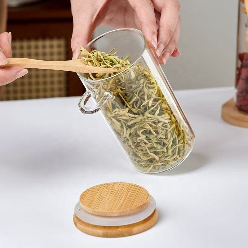 圆形密封加厚带勺罐玻璃储物罐茶叶罐咖啡豆储存罐厨房家用密封罐