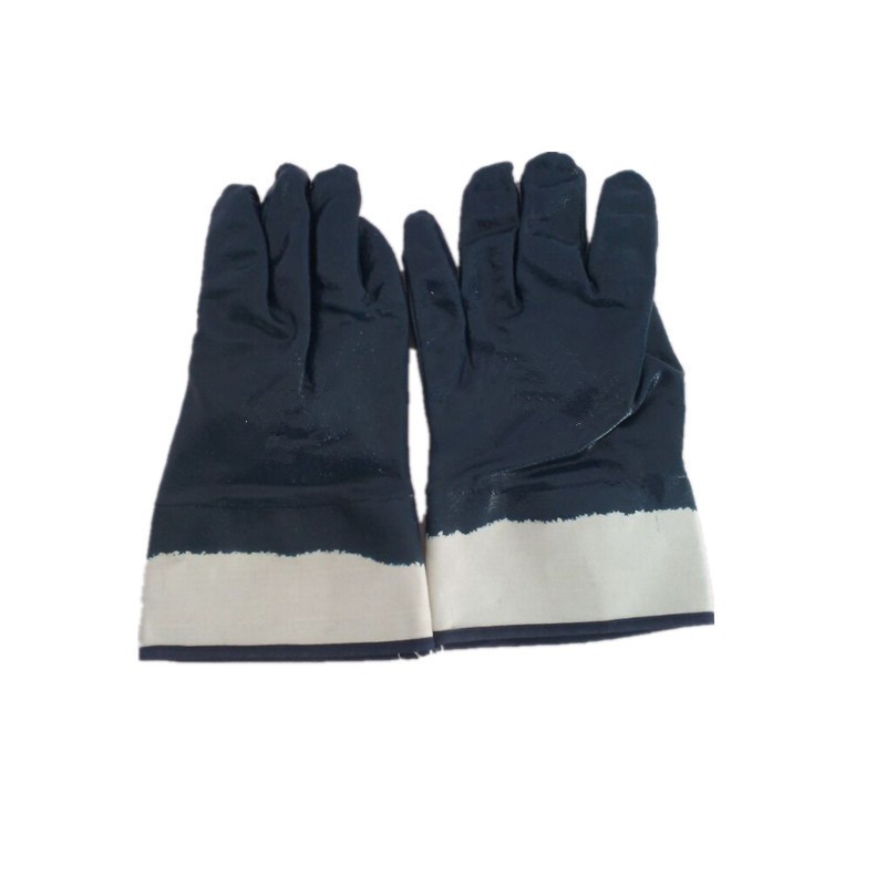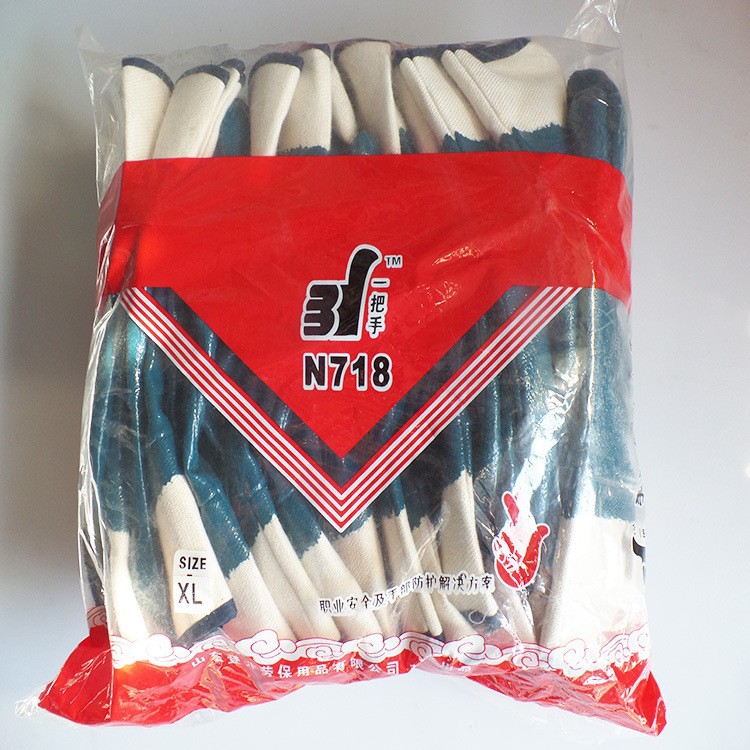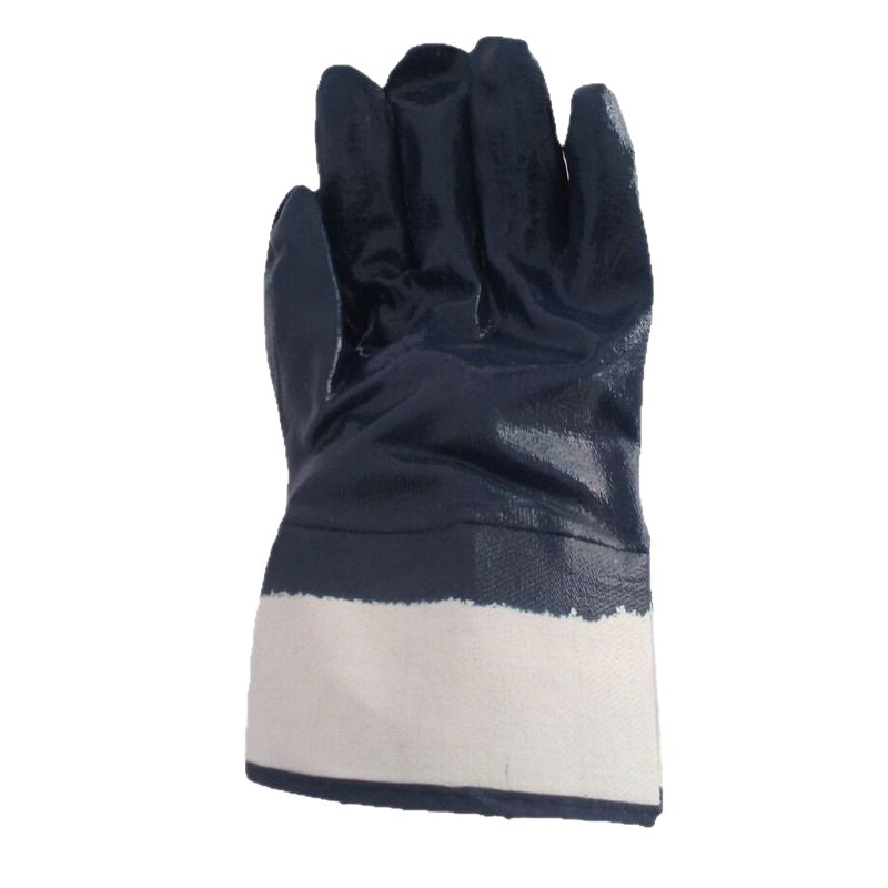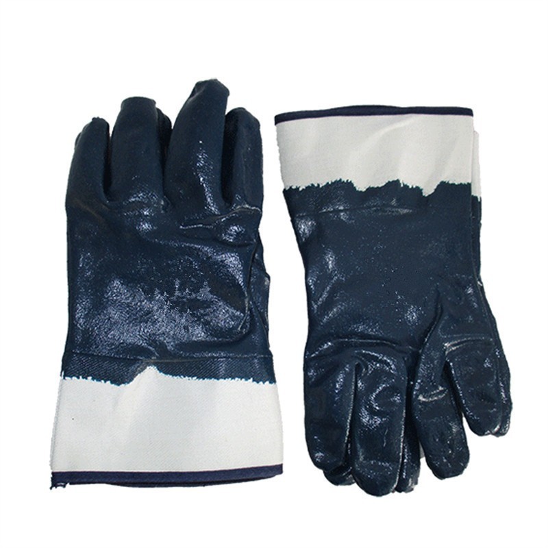 登升718绒布耐油手套劳保手套批发蓝色安全袖口防油手套绒布手套