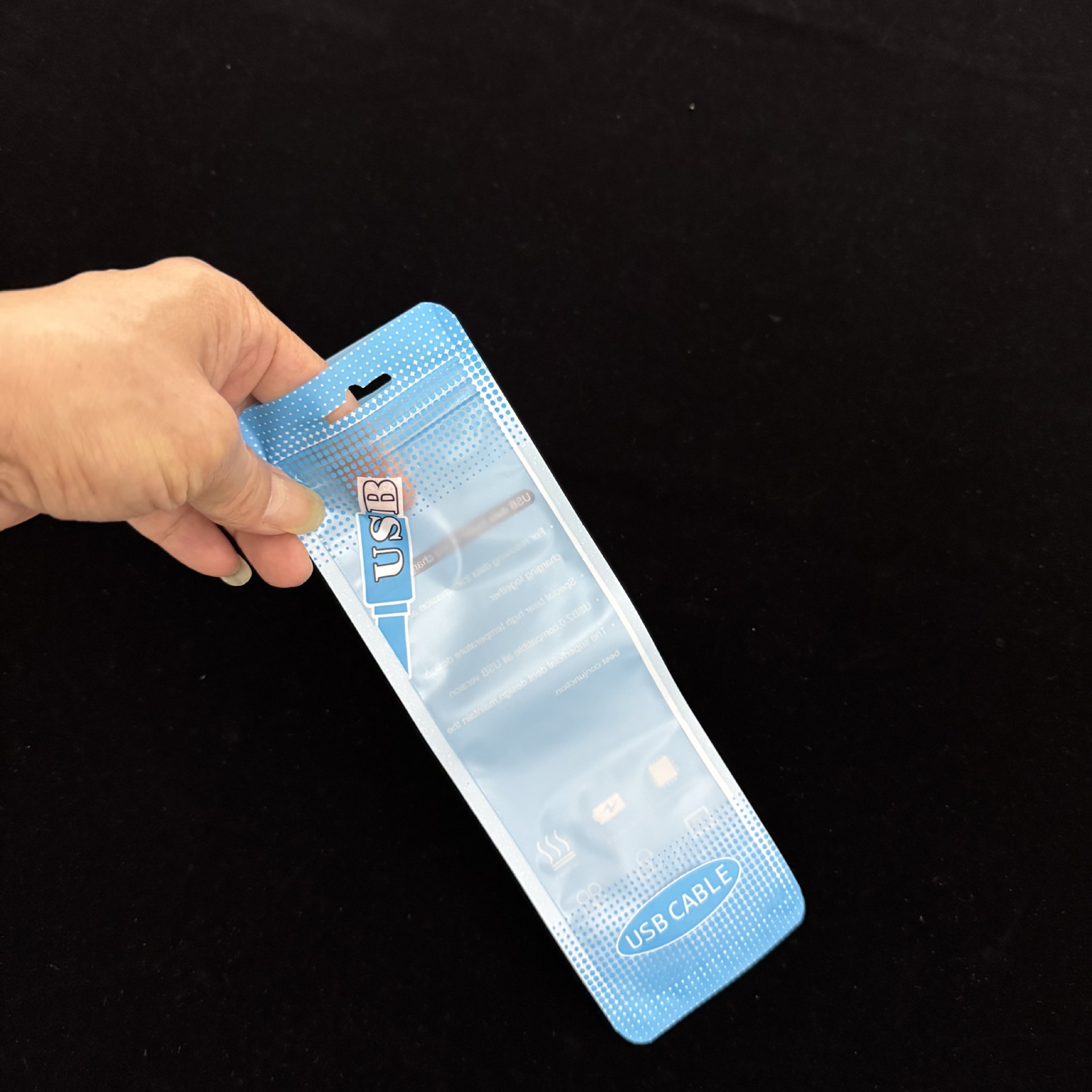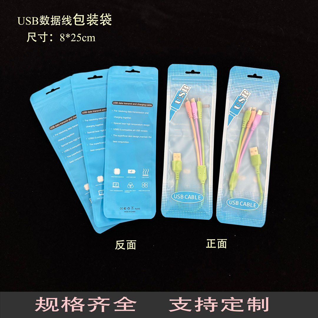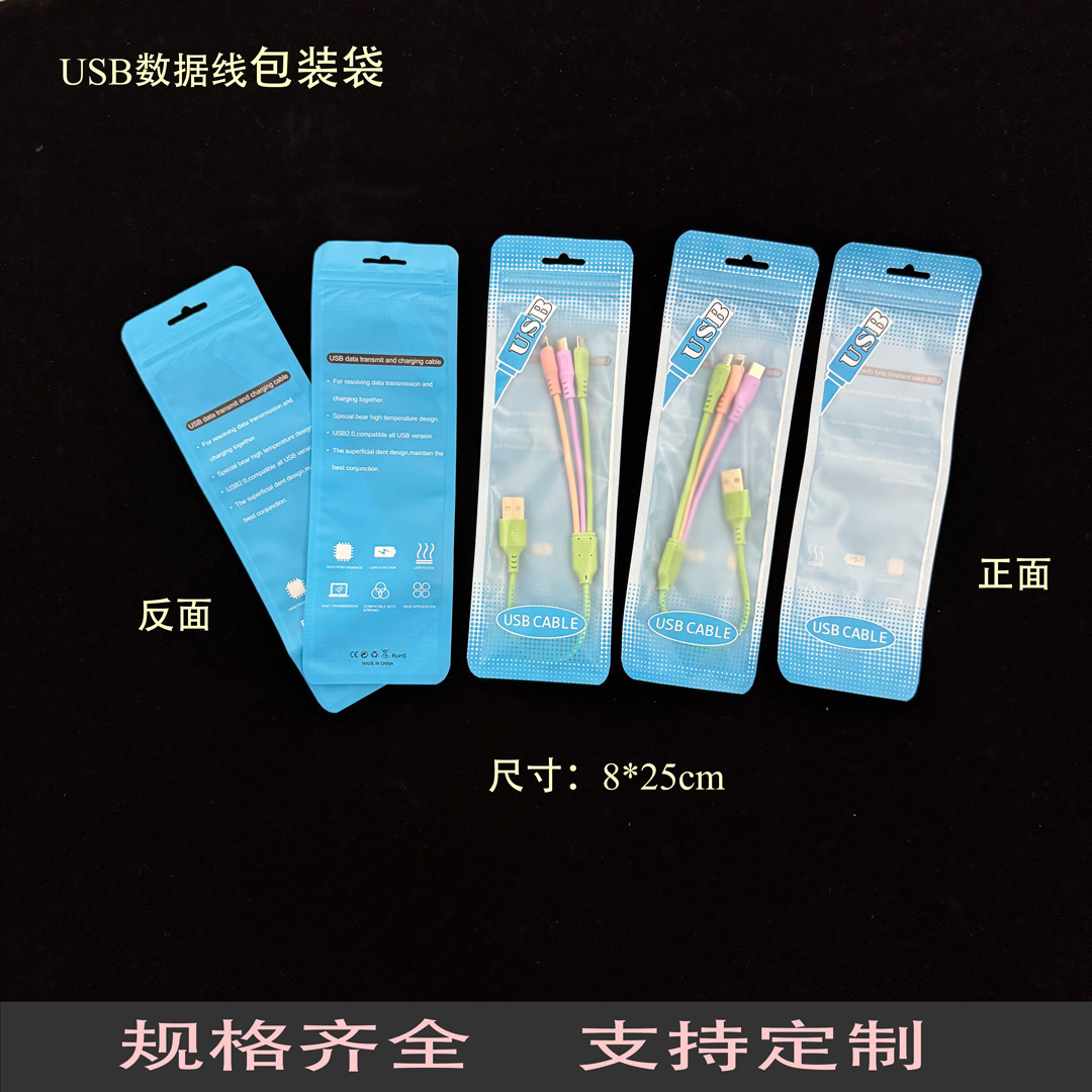 长条形25cm长USB一拖三充电线包装袋阴阳骨自封口袋子数据线包装