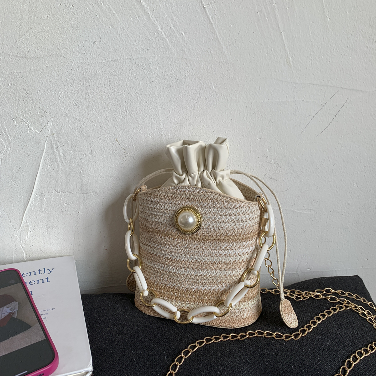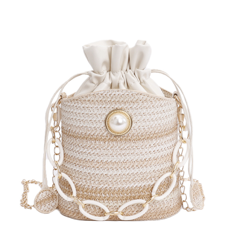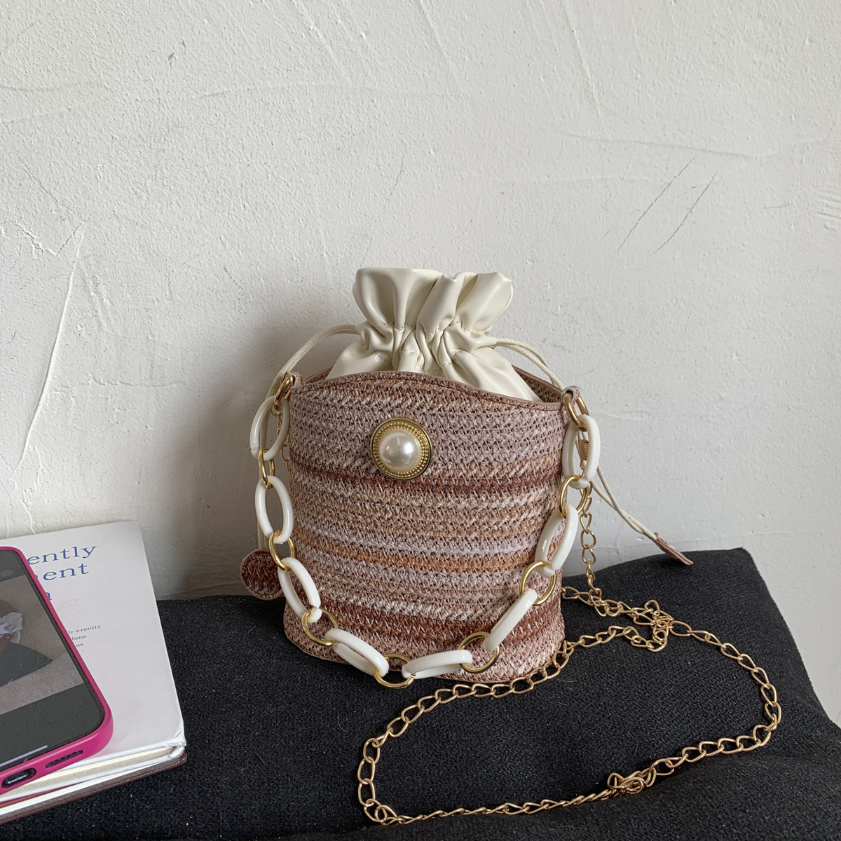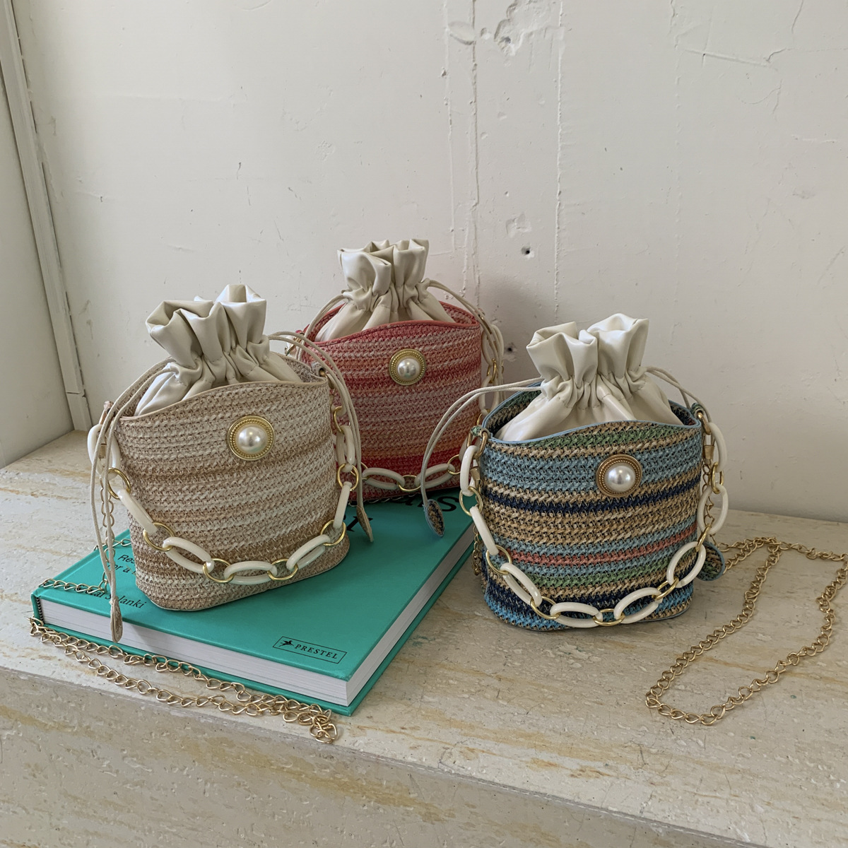 批发民族风手提水桶包女包2025夏新款草编撞色单肩包网红潮斜挎包