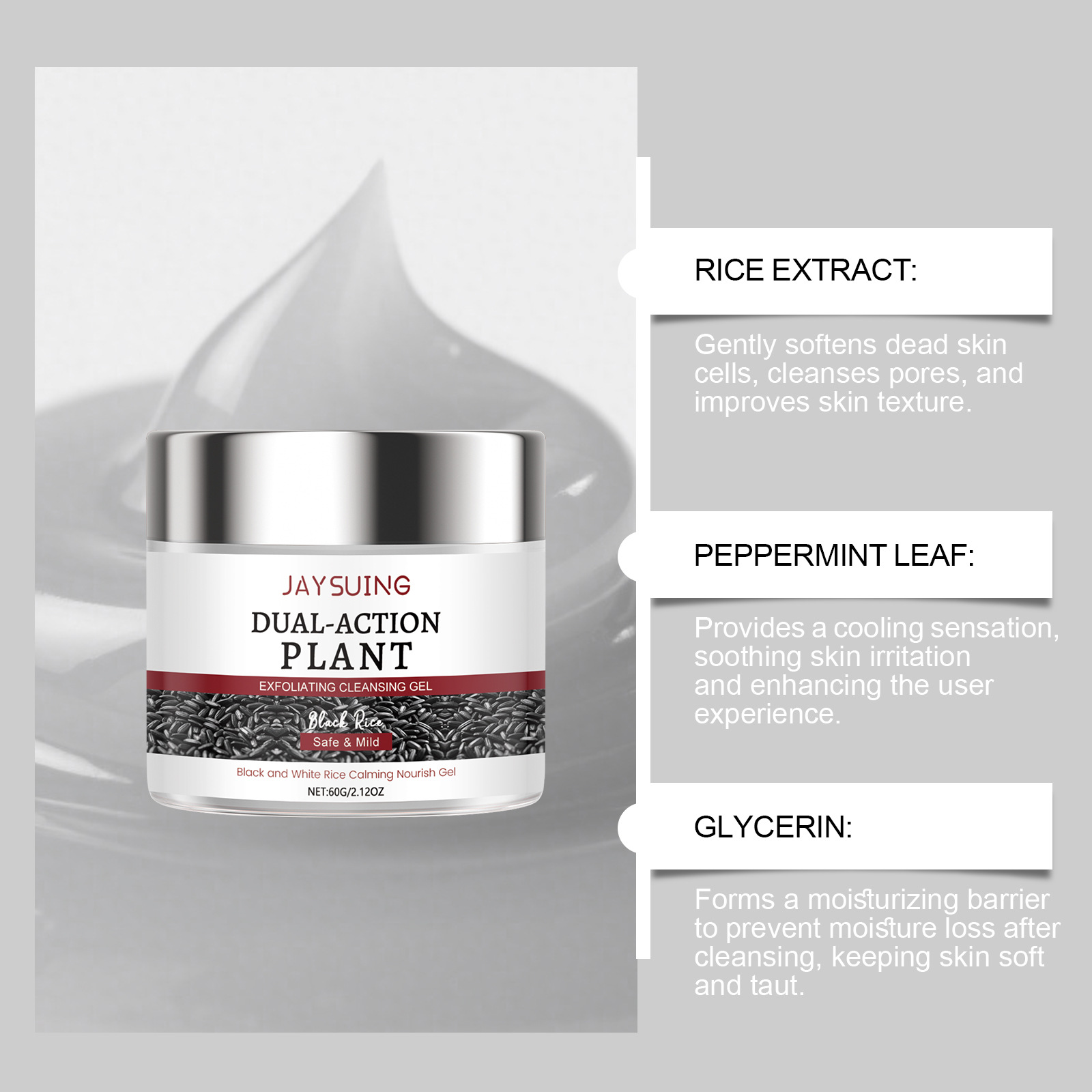 Jaysuing 黑米清洁啫喱 温和净肤细嫩清爽补水清洁面部肌肤角质